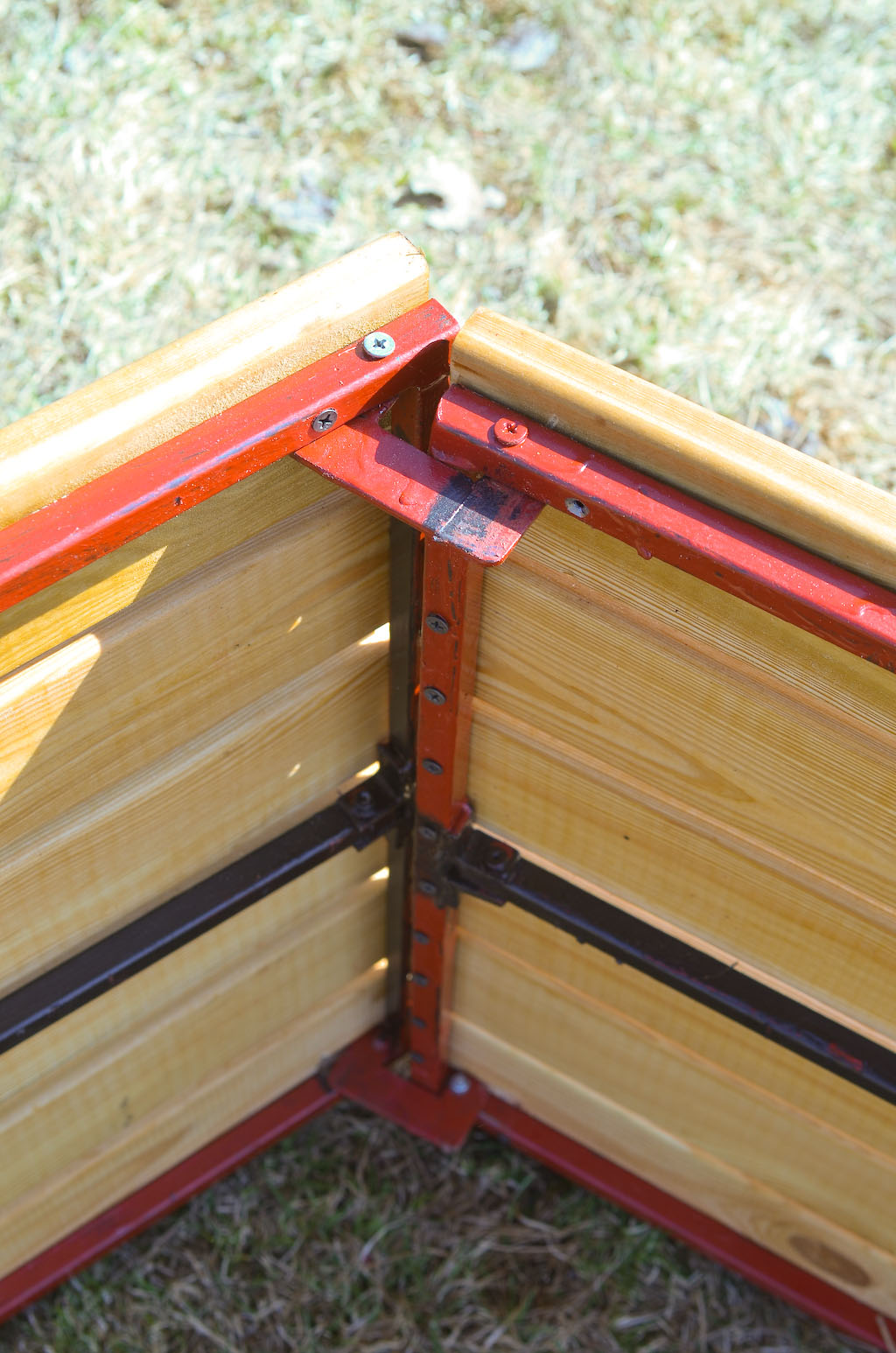 Железо покрасил маленькой баночкой красного и черного, когда красный закончился, хаммеррайта прям по ржавчине. красил колхозно, кисточкой. Краска оставалась еще с древних времен, походу этими баночками еще мои предки рисовали мамонтов в пещерах. Краски еще осталось - на пару полоков потомкам точно хватит.
