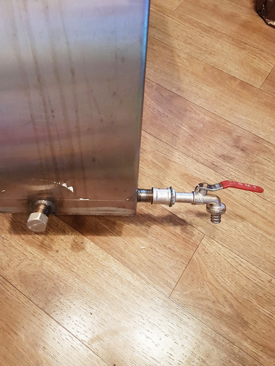 Приветствую всех Гвардейцев! Вот в своё время мне сделали под заказ, бак для воды примерно на 50 литров, пользовался один раз, теперь вот лежит без дела.На диаметр труб 90. Из нержавейки 1 мм, возможность установки крана в двух положениях.Прокладки в кране из паронита, не прогорят если воды не будет .ширина 25 , глубина 40 , высота 45 .