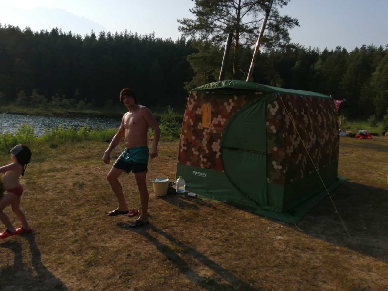 Отдуваться видимо все таки мне))) в пятницу на место приехали Миша с супругой, мы присоединились в субботу. Поставили баню в 103 в лагере, попробовали в полном объёме прокачать медианой, всем понравилось. Только вот не задача, до пляжа ходить метров 300, а у нас нет захода в воду. В воскресение решили окупировать пляж))) за одно попробовали 332 с двумя печами, кц3 и медиана, народ остался не доволен))) слишком жарко))) и слишком влажно)))) доходило до 120 на 50, дальше открыл вентиляцию для проветривания. Сказали пока была одна печь с каменкой, было лучше))) логично, там было 100 на 30))) в общем баня, сапы и вода-наши лучшие друзья))))