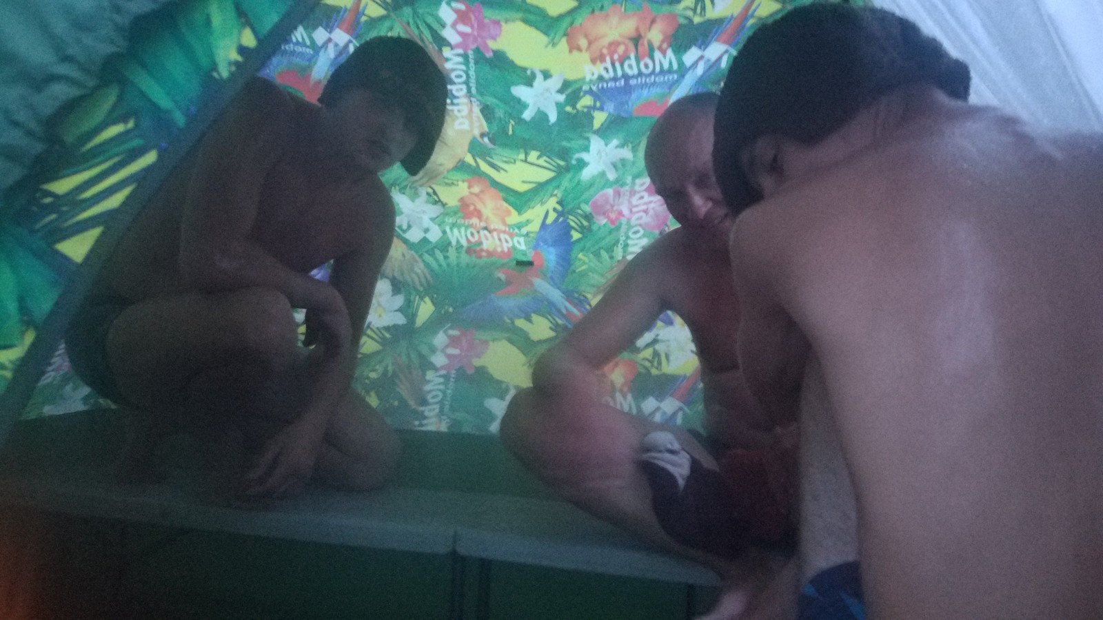 После осмотра с Алексеем Кайфандры в парке,захотелось потестить и сравнить с КЦ-3 в ИНИПИ-1. О чем предварительно и договорились. В субботу созвонившись с Алексеем встретились на озере,к вечеру уже когда стемнело, подъехал Артем. Пар КЦ-3 в ИНИПИ в принципе не сильно отличается от пара жиги в Кайфандре. Правда жига выдавала иногда пар даже жестче,80 градусов на 50 влажности и 90 на 45,приходилось к лавочке пригибаться а то уши сворачивались,мое мнение из за меньшего объема парилки,поднял руку махнул шапкой пару раз и жар уже на пол в ноги опустился,в ИНИНИ так не получиться. КЦ тоже давала жару температура доходила до 90 градусов,но пар был посуше и объем палатки больше. Кайфандра понравилась однозначно,нам с Татьяной на выезды и сплав на двоих то что нужно,будем брать по осени.