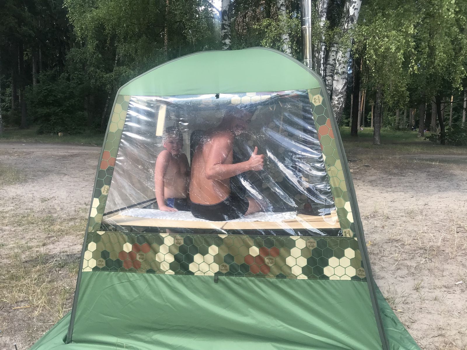 мое мнение что 10 хит, вместительность на погреться ( в 8ром вполне удобно ( 1 полок высокий, 2 скамья от двери под полок ), быстрота установки, малый транспортный габарит, малый объем легко прогревается летом любой печью, зимой 2 слой наше все и печь мощнее.