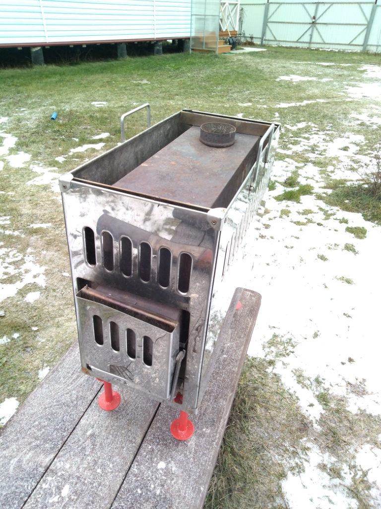 Проверил и попарился в палатке К5. Диаметр дымохода 80 мм. Ножки будут в комплекте другого цвета. Красные я прикрутил от Согры.