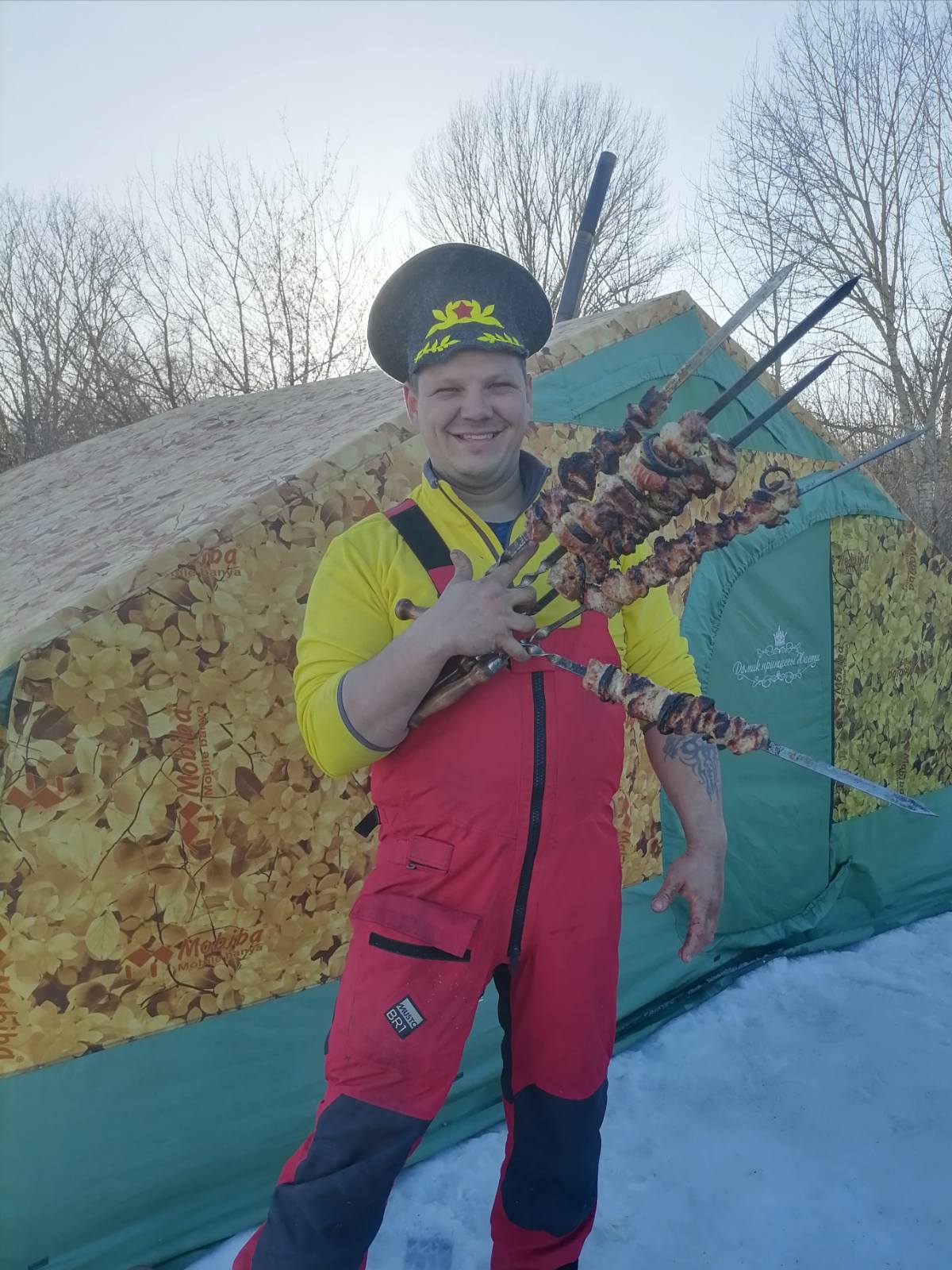 В выходные праздновал ДР. Принял командование банными войсками Нижегородской области. Проводил проверку шашлычной роты. Обучение по шампуроведению и мясожарению прошли успешно. Все нормативы сдали на отлично.