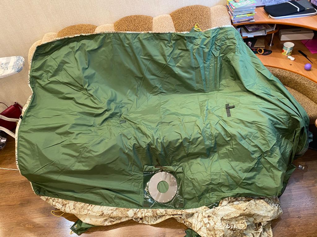 Тент накидной для МБ-10 2А, тоже с двумя большими окнами, цвет фирменный камуфляж;
