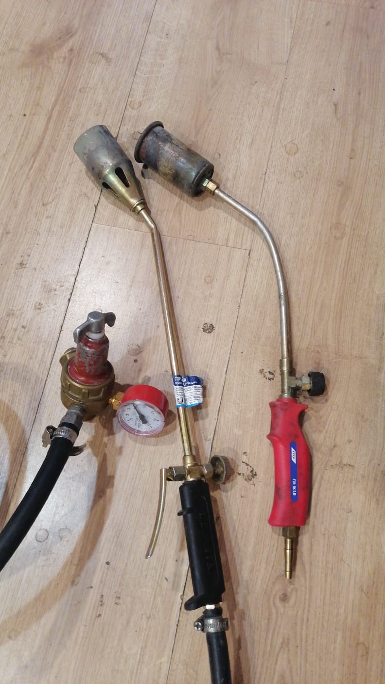 Анатолий использует горелку как с красной ручкой, без шланга. Мне удобнее вариант с дополнительным рычагом.