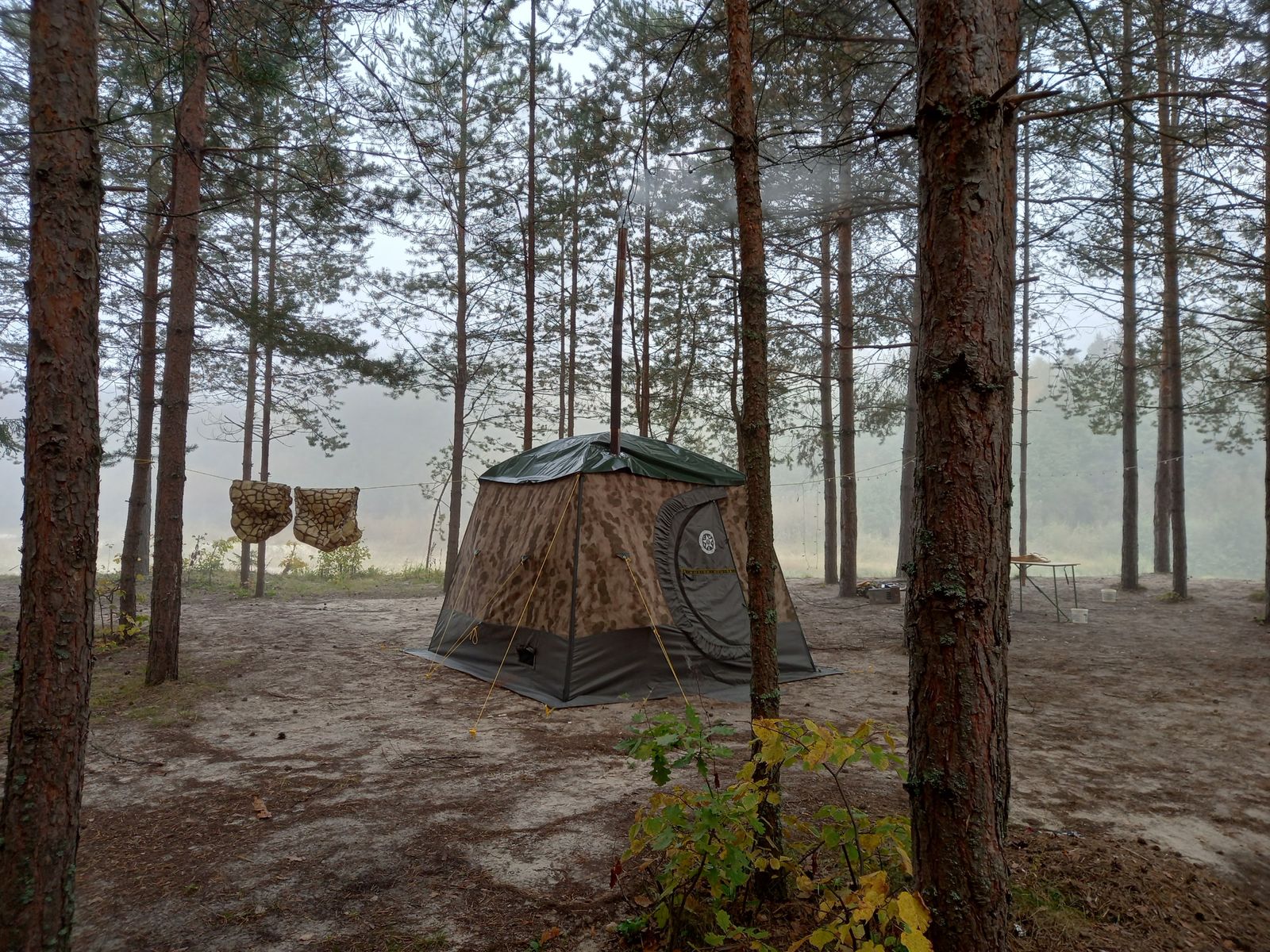 На днях выезжали с Татьяной на озеро отдохнуть от городской суеты,взяли 15ку Аква. в новой расцветке Мох,в сосновом лесу не сразу её можно увидеть,сначало ИЗН видно,окно может блеснуть на солнце,даже труба от печки Дюна со следами побежалости не видна на фоне стволов деревьев. Если стоит окно маскитка в тенях леса тоже незаметно. Баню делал в ИНИПИ с Жига-3,кайфовал один,по этому забыл сделать даже фото,так расслабился. Вечером карасика красного ловил,в основном везде серебристый,в режиме поймал/отпустил,мелкий но,какой кайф. Ну и Шикардос всегда с нами.