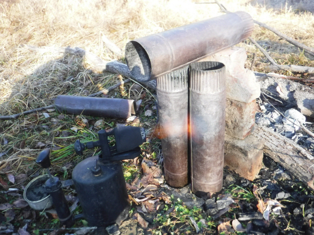 Сушу на нём палатку и пакрафт. Мне на работу только в ночь, т.е. время ещё есть, и я решаю прокалить дымоход Согры паяльной лампой. Толщина каменного нагара внутри сегментов уже сантиметр (крайние года три только обстукивал). Процесс довольно трудоёмкий - надо нагреть трубу до красна и твёрдый шлак, постреливая, начинает отваливаться. На всё уходит полтора часа.