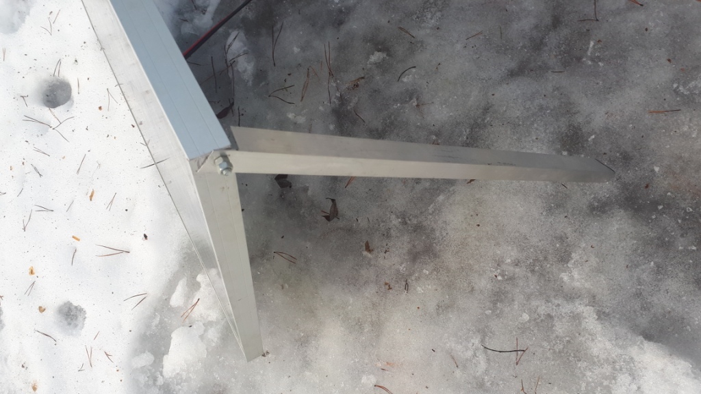 Была куплена на пробу солнечная панель на 50 ватт и простенький контроллер. К панели прикручены складывающиеся ножки и 6 метров проводов, из двп скрутил чехольчик для перевозки.