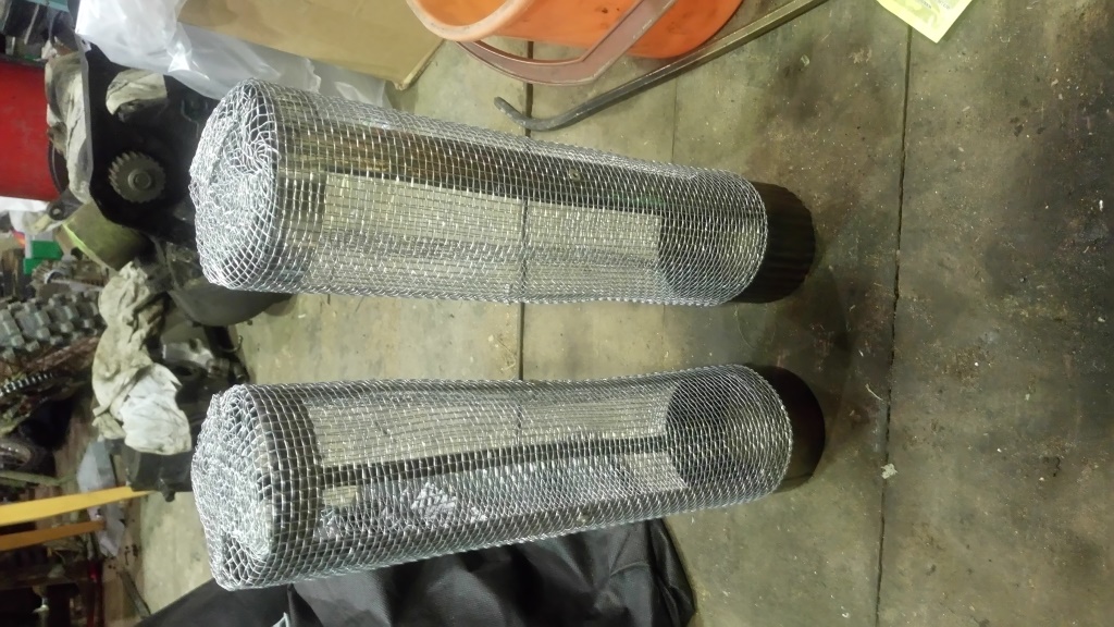 Немного дофэншуил сеточку. Но это еще не окончательно. Промахнулся. Сделал маловатый заход на трубу. В принципе держится, но надо увеличить. Каркасик сделал из найденных в гараже, дешевых шампуров. Размер такой, чтоб влезала в стандартный 90мм сегмент дымохода. По длине - как сегмент. Примерка на дымоход Жиги На законном месте, На КЦ-2 А вот дальше дикие эксперименты.