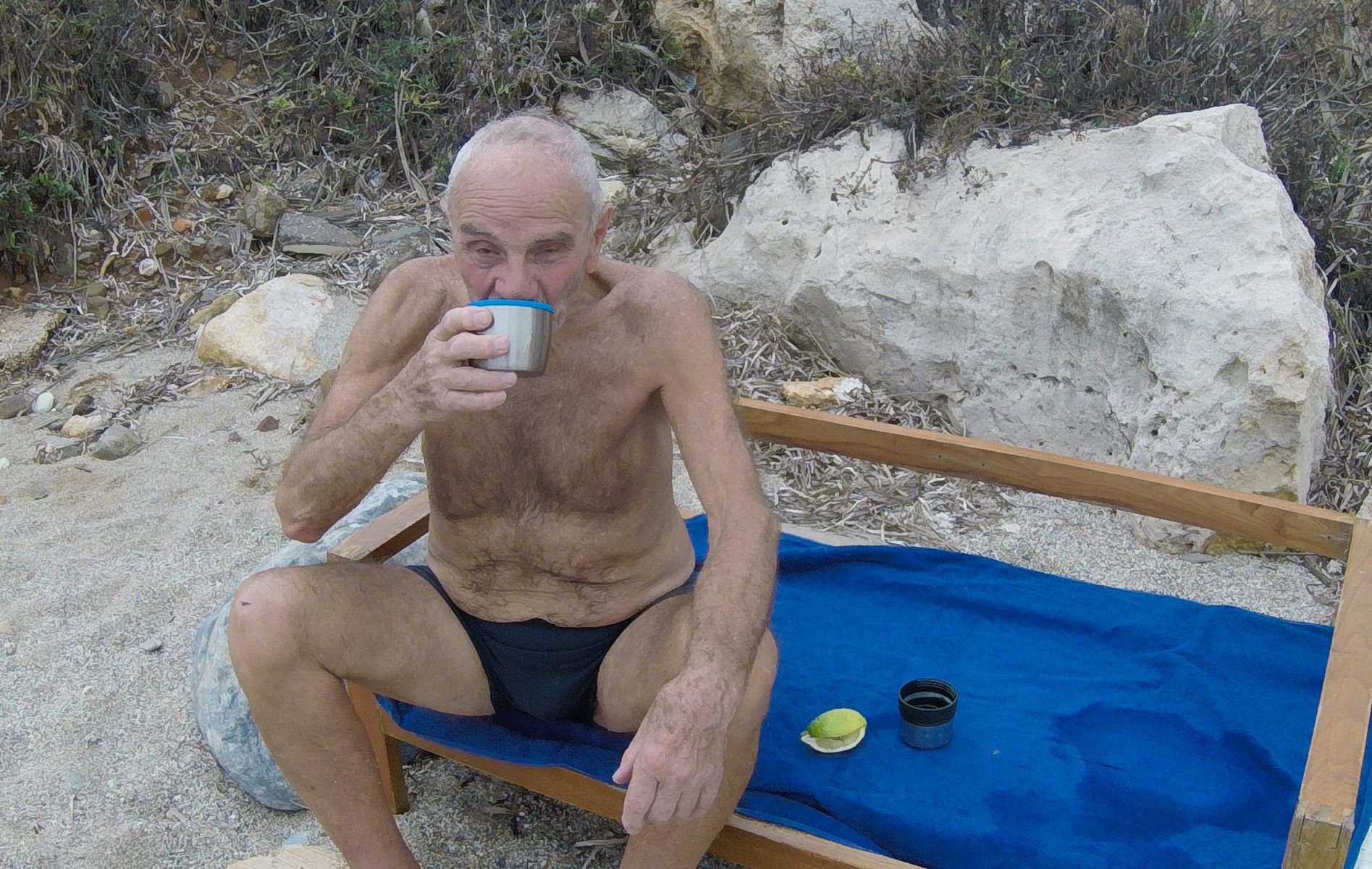 И вот в возрасте 87 лет, с пенсией 350, Марат решился изменить свою жизнь, вернуться на родину предков. Как он говорит, все шло хорошо, но его остановила строгая астиномия (полиция). Марат не может понять, почему его, гражданина Европы, задержали. Уже вторую неделю он живет на парковке, несмотря на 30 градусную жару, спит полусидя (машина завалена вещами), но, как он говорит, всё равно лучше чем в Латвии, возвращаться не хочет. Он мечтал о юге, море через дорогу. Большую помощь оказывает Светлана из русского консульства, Она обратилась к нам за поддержкой. И я, как уроженец Латвии, не смог остаться равнодушным к его проблемам. Марату понравился город Ретимно и он хочет остаться жить здесь. На днях я его пригласил к себе домой на обед, он кушает всё и к моему удивлению знает что и любит оливки, его отец всегда покупал их по возможности. Потом он принял ванну и побрился, обратил внимание что Марат скромный и аккуратный.