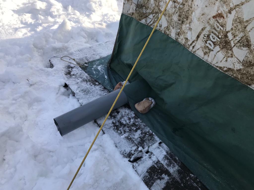 Получился интересный эффект: при работе Паробомбы внутри палатки всегда чуть избыточное давление, и если плотно закупорить мордой лица эту дырочку в массажном столе, то кислород поступает, но очень слабо, и уже успевает прогреться. Если в этот момент чуть приоткрыть дверь - моментально кидает в лицо порцию холодного воздуха. А вот если оставлять между отверстием и лицом зазор небольшой - то дует в трубу с улицы, и довольно прилично (аккуратно нужно с таким, ангину как нефиг делать заработать, но при избыточном поступлении всегда можно отрегулировать и перекрыть сечение до комфортного состояния).