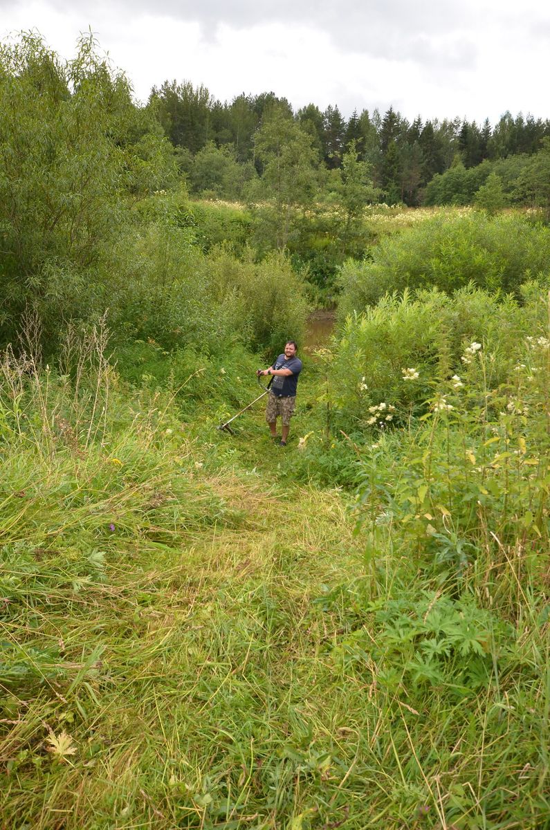 Насытившись экскурсионной программой, помчались на место ночевки на север, в деревню Лоходомово. Дорога, я скажу - нечто. Губернаторов и прочих мэров сажать за такие дороги надо. Представьте себе, как выглядит дорога после нескольких лет только ямочного ремонта - заплата на заплате, асфальт 50 оттенков серого - то ямка, то бугорок-заплатка, 2 узкие полосы, покатые обочины и это междугородняя трасса. Фотографировать не стал, некогда - ловил дорогу, машину постоянно скидывало в стороны. Но все хорошее, как и плохое заканчивается и мы приехали, затемно, как обычно. Уазами покатались по полянке, примяли траву, на ней уже разбили лагерь и поставили рядом палатки. Наутро Илья выкосил трассу для купания У меня Кайфандра из первых выпусков без защитного поддона, поэтому его я дозаказал отдельно. И вот первая примерка обновки. Приступили к сборке жиги с усовершенствованиями, пришлось немного выпрямлять геометрию побывавшей в трудных буднях печи. Особенности лета-2017 - кто-то уже в купальниках, а кто-то еще в куртках и при этом всем хорошо