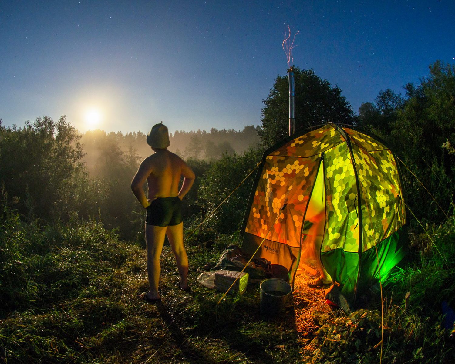 Было много скептиков и просто подавляюще уверенных в себе нетрезвых личностей, которые утвеждали, что-де у них-то вот сруб бани, а это все фня и они даже не зайдут. С такими я старался не связываться, ибо пьяному в бане не место в любом случае. А вот остальным, как мужчинам, так и особенно дамам понравилось очень, выстраивались в очередь и когда уже в 23 часа я затушил печь, разобрал дымоход и унес его к себе в палатку, народ горевал. Но безопасность прежде всего, я-то спать пошел, устав следить за порядком, да и градус подпития поднялся. Ночью слышал сквозь стенки палатки, как пьяные мужики еще порывались растопить да попариться в [холодной] ночи, но дымохода не было и ничего не получилось. Такой я редиска, зато никаких инцидентов в виде ожогов и прожогов.