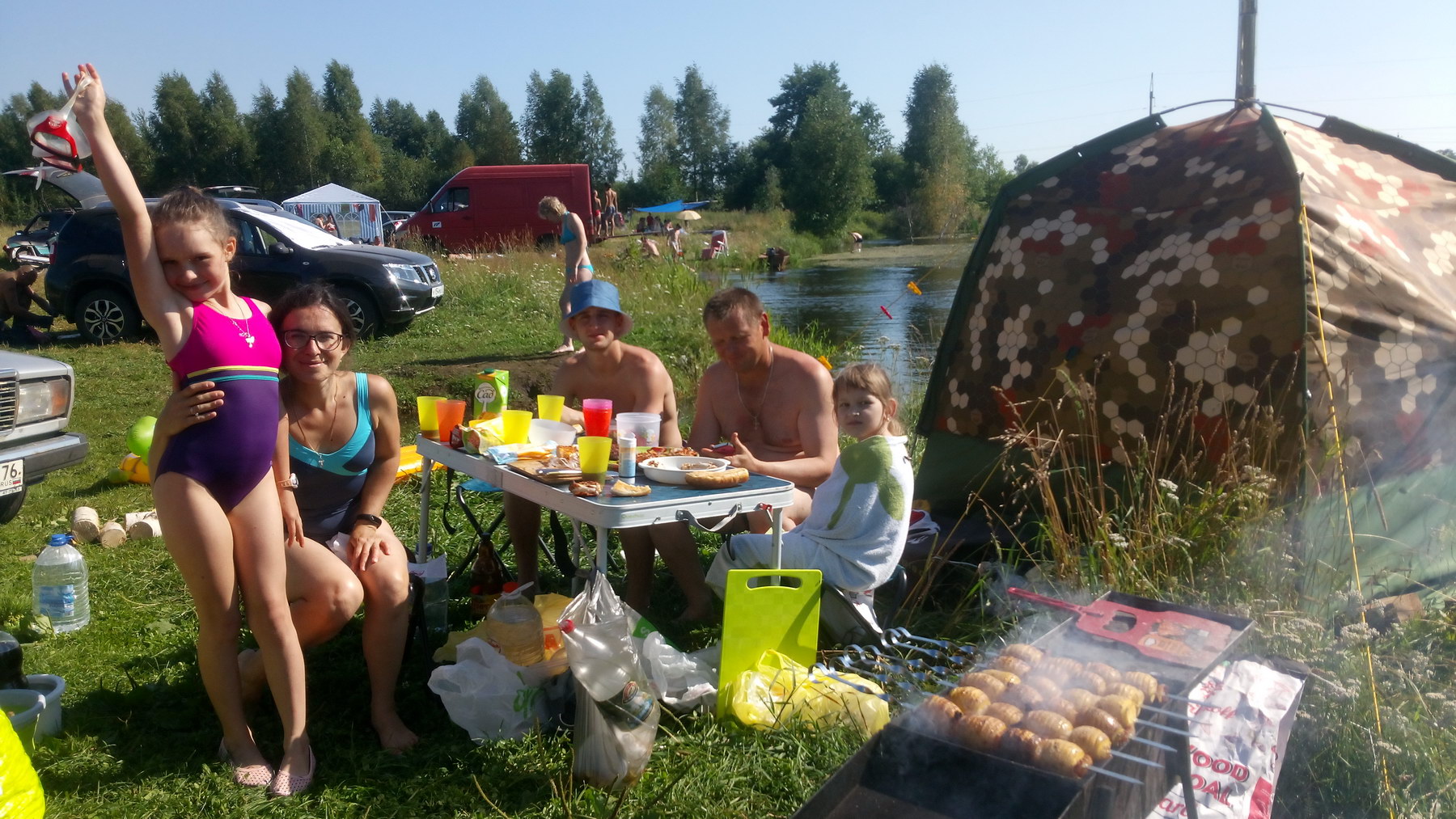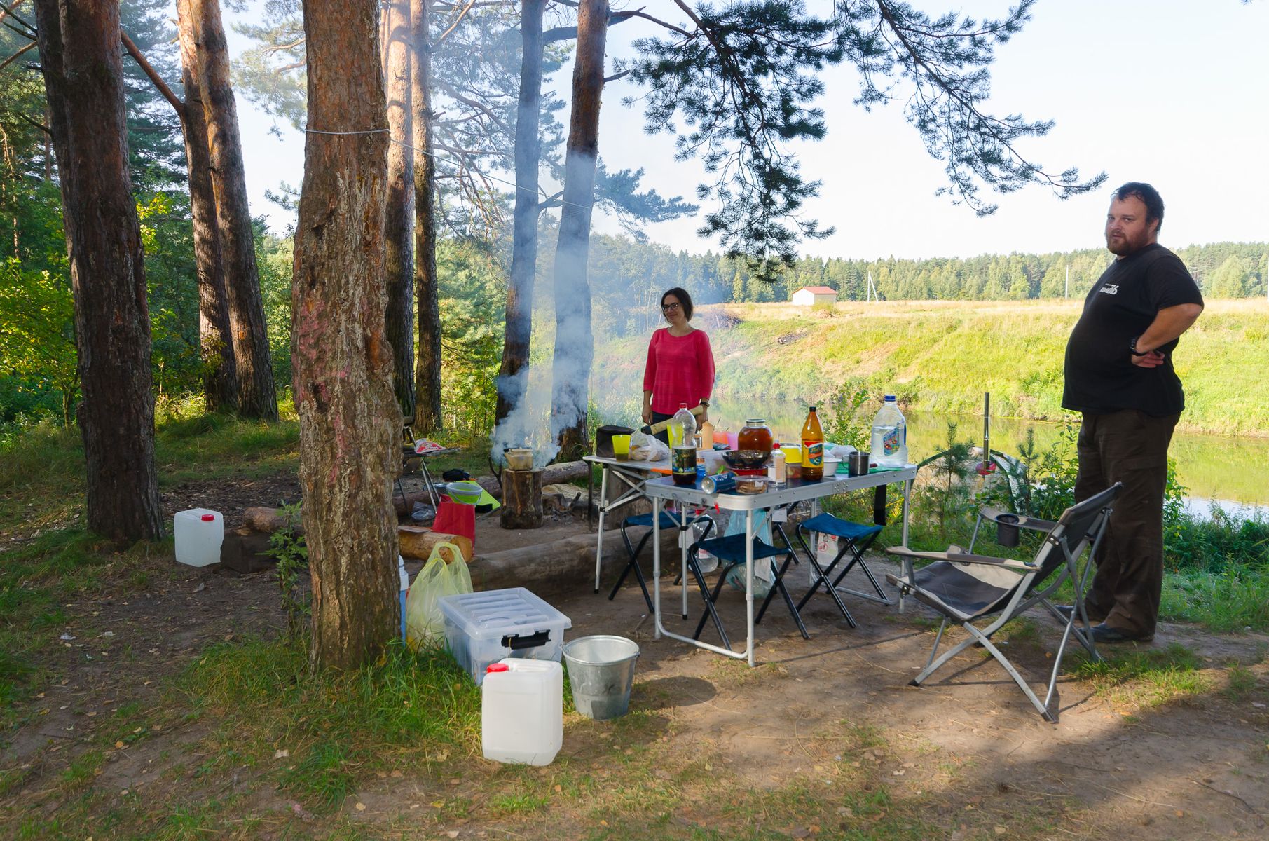 К 8 утра все проснулись, дети начали разводить костер для отпугивания мошкары, а после завтра ка помогать мне сворачивать палатку. Хорошо, когда дети помогают, собрали быстро. Кошки активно охотились за лягушками, но что с ними нужно делать потом - не знали, эх, городские. Баню мы ставить не стали - планов на этот день много, хотелось все успеть.