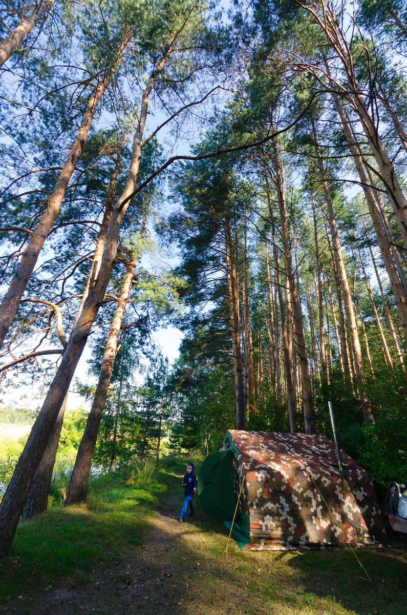 Итак, пятница, за-полдень, выезжаем. Компанию нам составит Илья Glu_iv, который выезжает с Ярославля и уже разведывает дорогу, а мы пока еще должны заехать за школьной формой в Ростов. Все получилось и к вечеру приезжаем по лесу в условную точку на реке Которосль, где уже однажды были, но располагались с другой стороны. На сей раз нашли путь и подъехали поближе к воде.