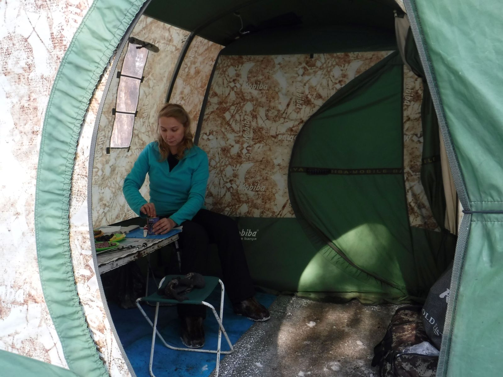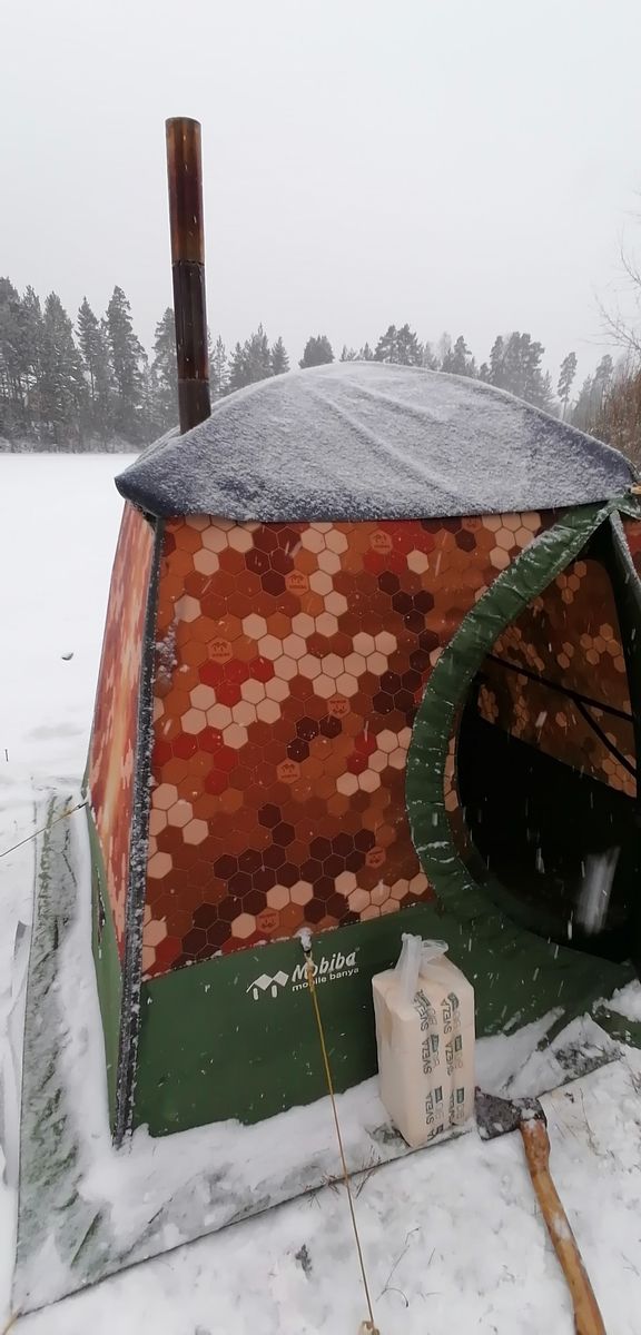 Волей случая стал обладателем МБ-10 и сразу на тест с мини-кц4 и теплым полом. На улице было -2 градуса, снег и печь справилась на ура, думаю и жига-3 сделает отличную баню в таких условиях. Про палатку, хотел сильно испытать такую палатку и в ней понравилось только одно, высота. Начнем с того что я избалован удобством Мобибы. первое что мне не понравилось это дверной проем, при такой высоте палатки в него не удобно заходить/выходить, на той же РБ-200 в разы удобнее дверь, дуги для двери должны быть гнутыми и иметь формы как на мб-15, рб-200. Потом мне не понравилось что разделка дымохода врезана как рб-170, в левой стенке если смотреть со входа и тем самым печь практически посередине палатки, вот еслиб врезать как на РБ-200 то печь встанет в углу и по мне будет удобнее. Я в бане люблю полежать, порелаксировать, думал что смогу на 700-ом полоке лечь в полный рост не упираясь в стенки, не получилось. Что понравилось, это то что изн от рб-200 идеально подходит если ее развернуть верхом вниз.