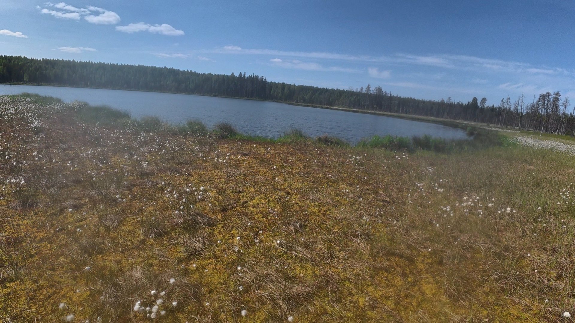 Поэтому утром чай, сборы, и в путь, прорубать дорогу. В этот поездке всё получается. Навигатор не теряет жпс и показывает треки, бобров, похоже, зимой съели волки, мостики, застеленные в том году, удаётся проскочить без потерь. Остановились передохнуть возле знакомой ламбушки – тот год знатно обрыбились. Но сегодня всего одна щучка-вовсю цветёт вода. На болотах красота - цветёт пушица, северный хлопок. Дорога растворяется в подлеске за километр до цели. Ну что-ж, раскатать болотники, снасти в руки-и вперёд, сегодня мы не отступим.