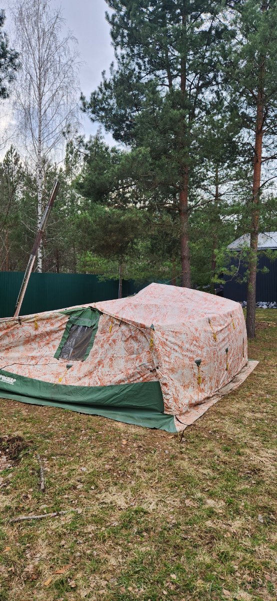 Я пока по поводу покупки новых трубок с отделом продаж не связывался. И пока хочу продать как есть эту палатку. Цену вижу с хорошим дисконтом (как мне кажется) 30000 р. У кого руки на месте, поправить шпангоуты и заменить трубки труда не составит. В стоимость входит палатка, пристяжной пол, правда он судя по всему от другой палатки, наверное от 34-й, потому что один пролет земля открыта, теплый пол. Из минусов: теплый пол и пристяжной имеют прожоги, внутренний тент внутри имеет пятна, сумка имеет запах мочи котЭ. Может кому-то это и не минусы) Кто-то об этом и не говорит при продаже) Опять же, если я цену завысил, готов рассматривать предложения. А если таковых не будет, придется восстанавливать и пользоваться самому.