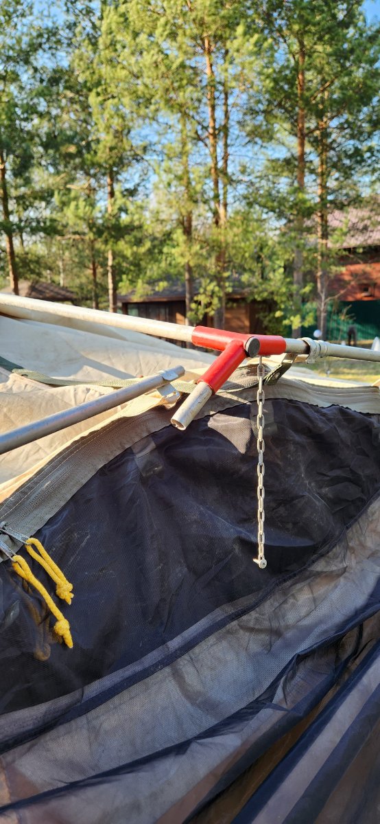 Связался с отделом продаж, есть вариант заменить поломанные и погнутые части каркаса: не из дюралюминиевой трубы, а из стеклопластиковой трубы. Мне это подходит. Потому палаткой буду пользоваться. Да и желающих купить "как есть" не оказалось)