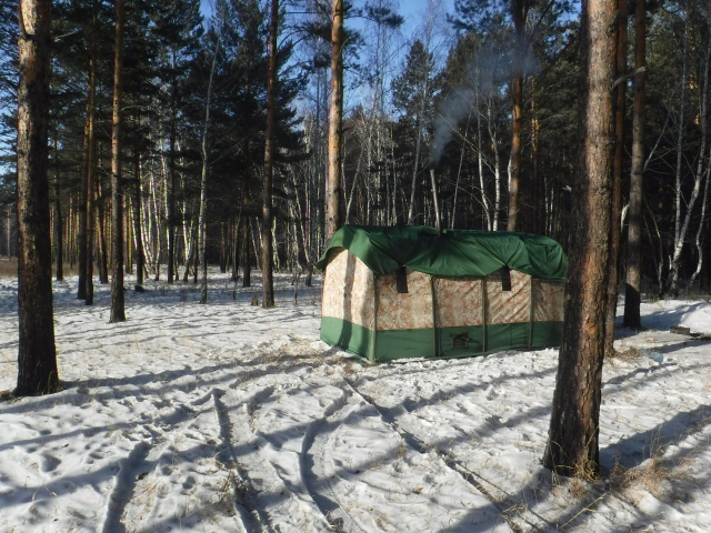 Самый холодный февраль за последние 55 лет, как говорят синоптики, а также самая бесснежная зима за последние 40 лет в наших местах. Из-за этого мы выбирались не часто. На эти выходные лишь третий раз за зиму топили Мобибу. Мороз уходит, и -21 с утра и -16-18 днём - самая нормальная температура для 104-й с Медианой. Отлично съездили, только вот у детей нашлись более важные дела, и мы с женой целый день с утра и до темна были в лесу вдвоём. В баньке попарились, в снегу повалялись, мяса пожарили. Только вот со снегом в этом году проблема.