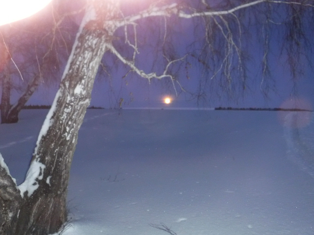 Темнеет рано, и перед самой темнотой Олег берёт пару неплохих хариусов. Убираем перегородку, Медиана мгновенно высушивает палатку так, что даже листья с берёзовых веников не успевают отлететь со стен. Выносим печь, ставим кровати, набиваем Согру топливом. Всё, теперь можно и посидеть душевно за рюмкой чая. Таёжный супчик сварен. На завтра обещали солнечную погоду, решаем сменить снасть. Обсуждаем печи и двухслойные палатки Мобибы. Хочется всё, но у всех кризис, отец его.. На этом повествование можно было и закончить, всё на этот момент было просто замечательно. Но парни забыли с кем поехали, ведь я последнее время просто притягиваю к себе неприятности. К 24 часам (пятница, 13-е) резко похолодало. Было -12 градусов, стало -21. Упало давление и Согра впервые в жизни потухла(!). Виной всему сырая напиленная берёза. Это сразу почувствовалось в палатке. Осталась пара-тройка карандашей Пиникея. Разломил, смешал с берёзой. Тут же вышла из строя насадка на газовый балон, вторая тоже отказалась работать. Тем не менее, Согру взбодрили и больше она сюрпризов не преподносила.