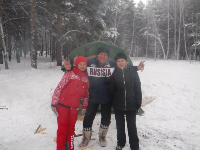 У нас потеплело -14. Сделать прорубь на близлежащих озёрах - надо убить полдня, поэтому мы в лес, на нашу поляну. Друг мой Александр, рыбак и охотник, возглавляет в Ачинске комбинат по добыче алюминия и приезжает на родину раз в три месяца. Мы одноклассники и дружим более 30 лет. Коротко надо заметить, что это человек недюжинной физической силы (меняет колесо без домкрата, плывёт кролем 2 км, тянет канат на чемпионате России и прекрасно чувствует себя в своём 140-килограммовом теле). Обожает баню и особенно Мобибу. Кстати, Александр зарегистрирован у нас на форуме и следит за отчётами и новинками. Именно он летом разогнал мою МБ-10 до 140 градусов летом и сидел в ней полчаса, что никто не мог даже зайти. Каждый его приезд мы топим Мобибу на природе. И этот раз не стал исключением.