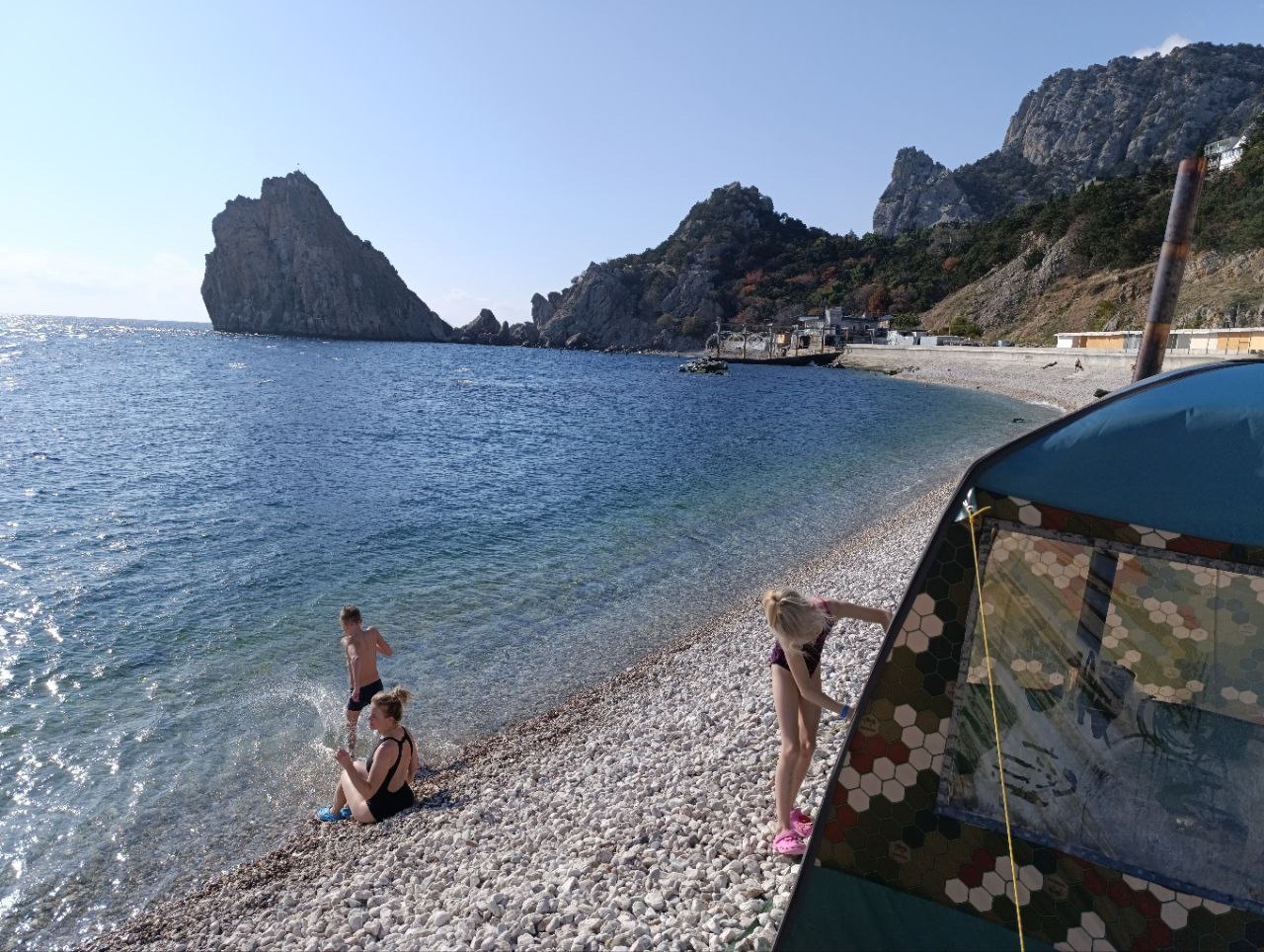 Баня в Крыму на скале Дива. Ноябрь 10 градусов. Открытое место ветер с моря хороший сквозь крупную гальку тянул, но жига как всегда справилась. Нашли шезлонг поломаный и использовали вместо полога. Баня с печкой в рюкзаке, пакет с тапками, пвх ёмкость для воды, апельсины, гермомешок с брикетами -вот всё что нам понадобелось в этот раз.