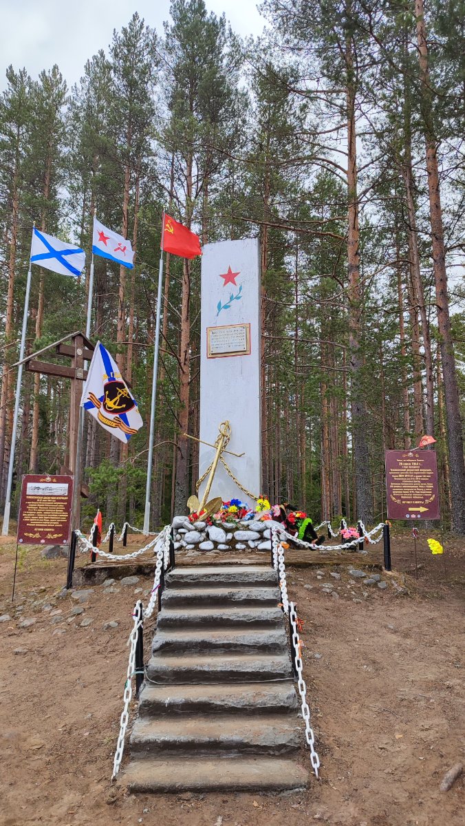 Ночью температура опускалась до 0, в палатке было +18, спалось шикарно. Следующий день – 9 мая, погода шикарная – солнце, относительно тепло +10. Мы стояли недалеко от р.Тулокса, здесь в годы ВОВ проходила Тулоксинская десантная операция. Прогулялись до памятного мемориала, почтили память. Потом неспешный пляжный отдых, баня и вкусный обедо-ужин с потрясающим видом. Переводим МБ-15 в режим спальни, меняем стол со стульями на раскладушки, завариваем чай на печке, играем в настолку «Ерундопель» и проваливаемся в сон. Утром экран МБ-15 показывает черно-белую версию «вида на миллион», сегодня пасмурно. Неспешно собираемся, решаем выехать пораньше, в планах заехать еще в пару месть посвященных ВОВ, да и дорога домой с учетом пробок будет долгой.