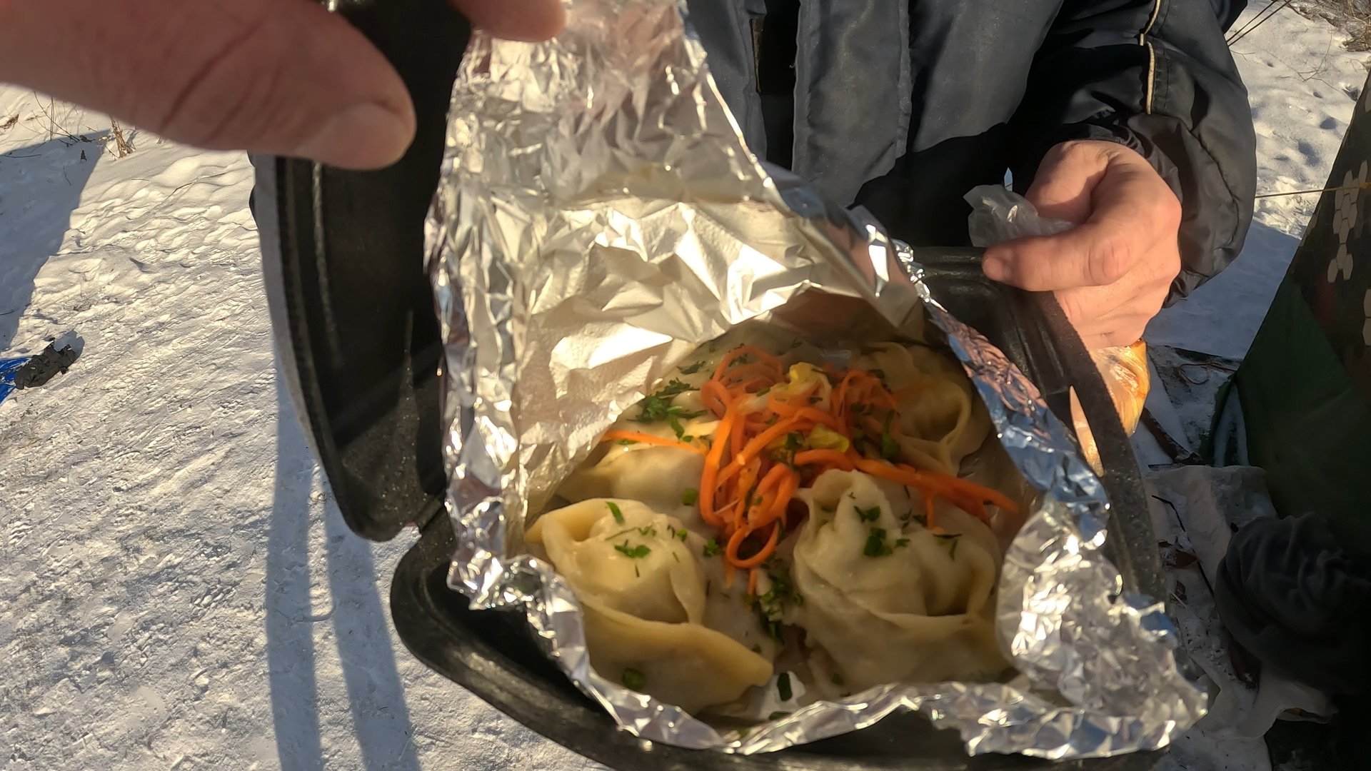 Зашли вшестером, задвижку открыли, поддали парку. Четверо на полог, один на стульчике, один с вениками. Парабомба закипела, в РС22 нас не почувствовала , стала раздавать вкусного пара… Смелые в воду, контраст, на реке -20! Пару заходов.. жара! Солнце, прозрак сманили нырнуть. В воде красота.