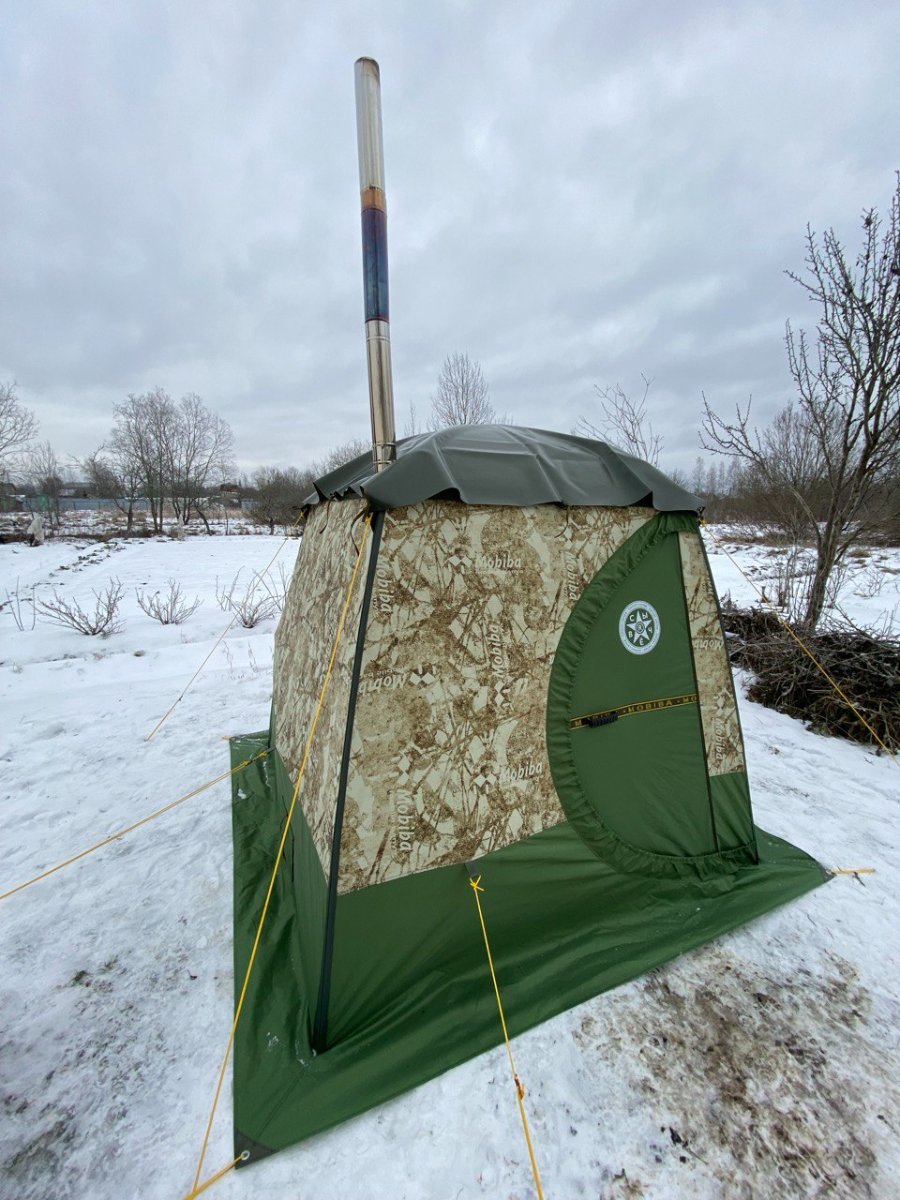 Всем привет, хотел бы оставить отзыв о «Мобибе». Не так давно, а точнее в декабре, купил себе комплект МБ-10+ печь «Мегасогра». Долго думал, что выбрать и что лучше купить, но остановился именно на таком комплекте. Полок варил себе сам, так как не увидел ничего сложного, надеюсь, это не запрещено. За новогодние праздники выезжали два раза, и оба раза были великолепны. Когда купил, не ожидал ничего интересного, просто палатка+ просто печка, но когда в баньке стало +100 на термометре, я понял, что деньги были потрачены не зря. Я был приятно удивлен продуманности конструкции палатки(спасибо разработчикам). Топил баню и Руфами, и дровами, но для себя решил, что лучше простых дров нет ничего лучше. Сразу возник вопрос, а как бы в ней еще и помыться(смыть пот и листья), всё-таки с таза не очень удобно это делать, да и не эффективно (большой расход воды). И было принято самое простое решение: купил походный душ на аккумуляторе. Сейчас сижу и планирую выезд на природу к озеру или речке, но возникает вопрос, где переодеваться и отдыхать после заходов в баню? Может, форумчане подскажут. Разработчикам бани МБ-10 большое спасибо — офигенная баня, классный отдых! Вы продаете не бани, а эмоции. Кто думает покупать или нет, то 100% покупать.