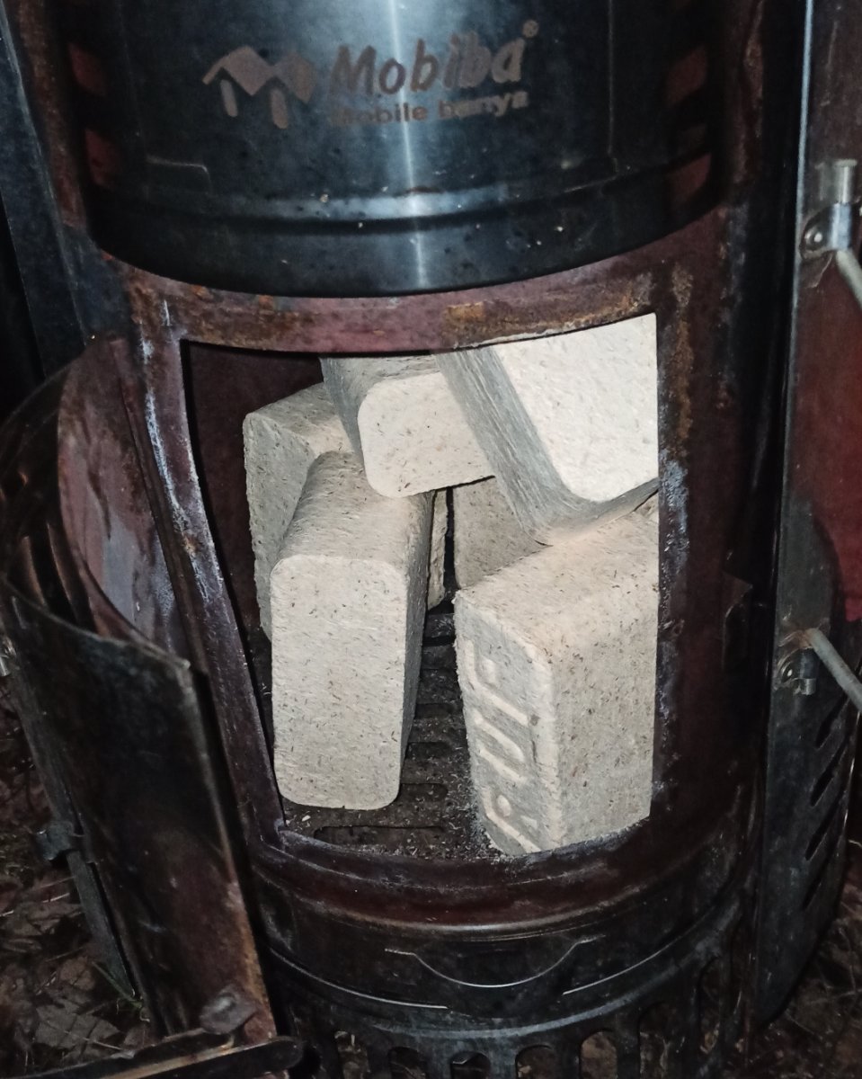 Есть ещё один простой способ,не раз писал уже,едешь из дома на машине,налей 10 литров горячей воды в канистру,от ноля градусов такой способ практикую. Если воду набираешь на месте,коли брикеты и дрова для первой протопки помельче и не забивай сразу топку целиком.