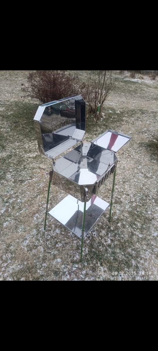 Шикардос МГ-2, по размерам для жарки на решётке, такой же как МГ-1, только лешенный "холодных зон" по углам. Плюс добавился надёжный столик, теперь бутылочку вина можно смело ставить на стол внизу, а сверху аккуратно бокальчики. Шикардос, как писалось ранее, что МГ-1,что МГ-2, идеален для компании из 4 человек, для одной машины.