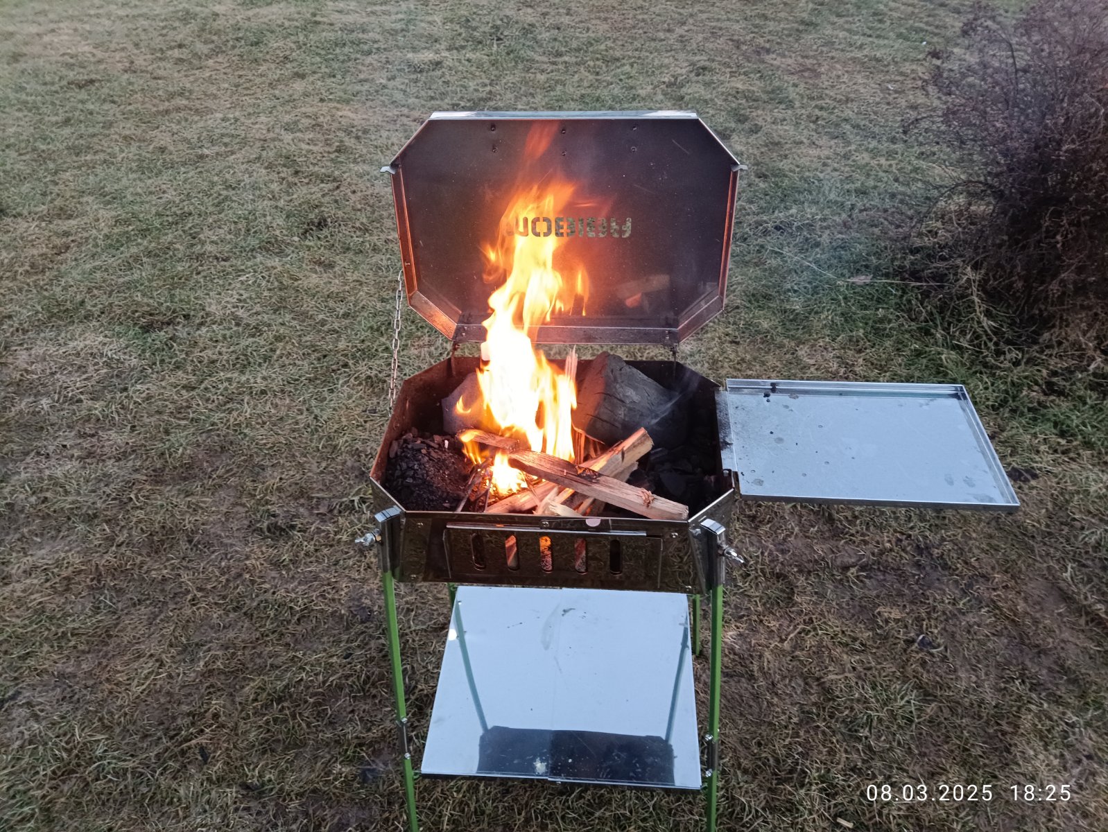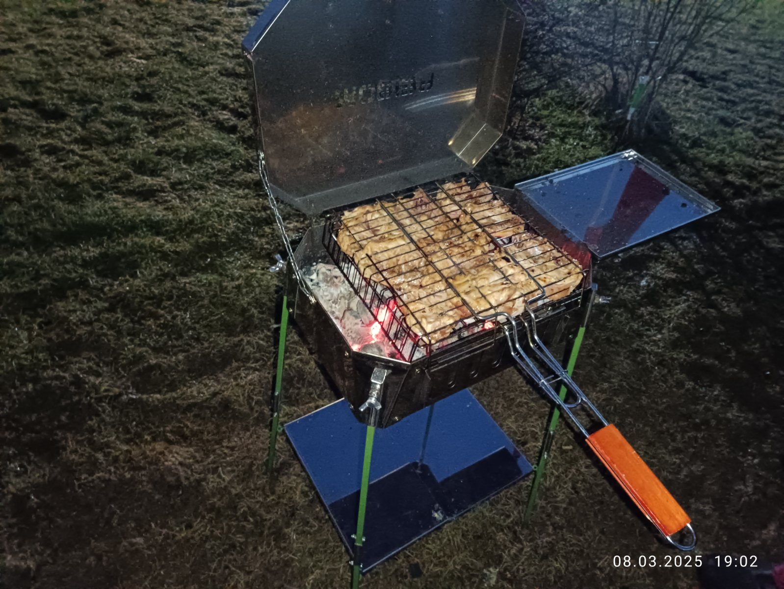 Дальше я даже хотел подарить его Алексею и Вале, но вовремя понял что это бессмысленно. На даче у них есть здоровенный мангал. А на природе мясо и прочее всегда жарю я на своем мангале ...