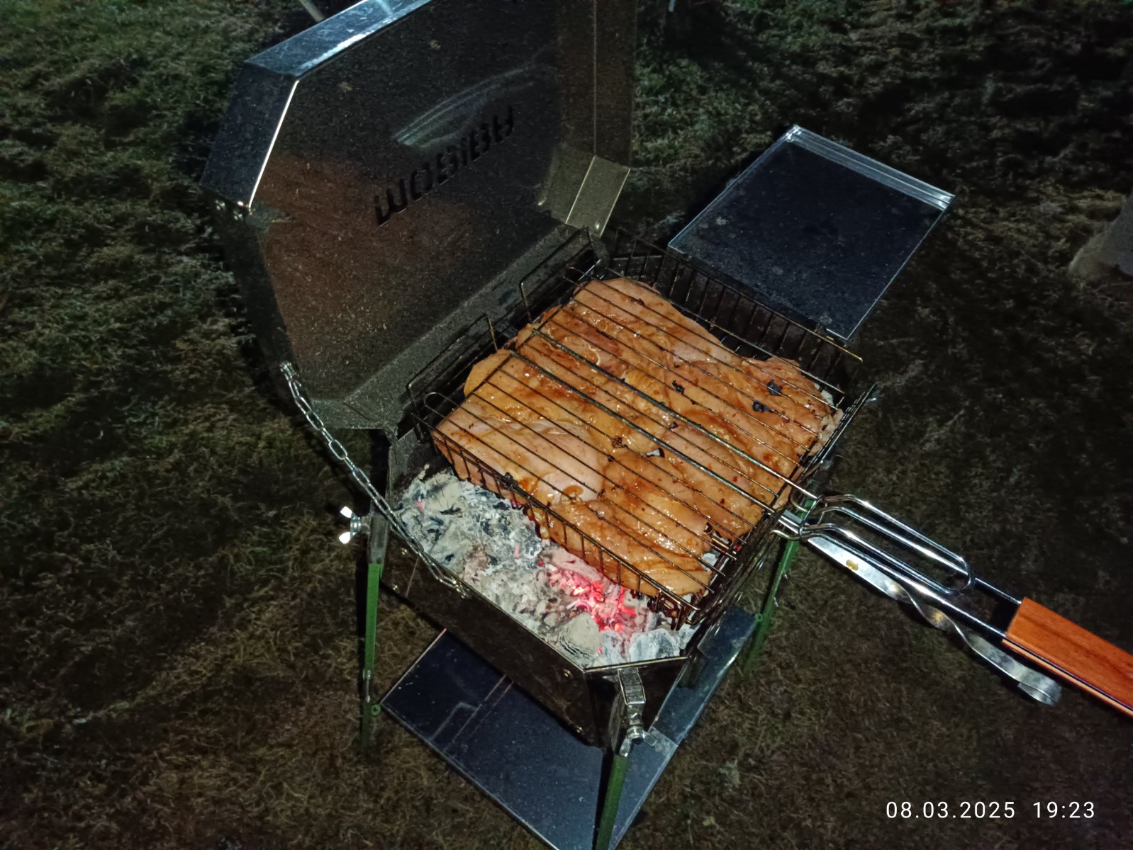 Дальше я даже хотел подарить его Алексею и Вале, но вовремя понял что это бессмысленно. На даче у них есть здоровенный мангал. А на природе мясо и прочее всегда жарю я на своем мангале ...