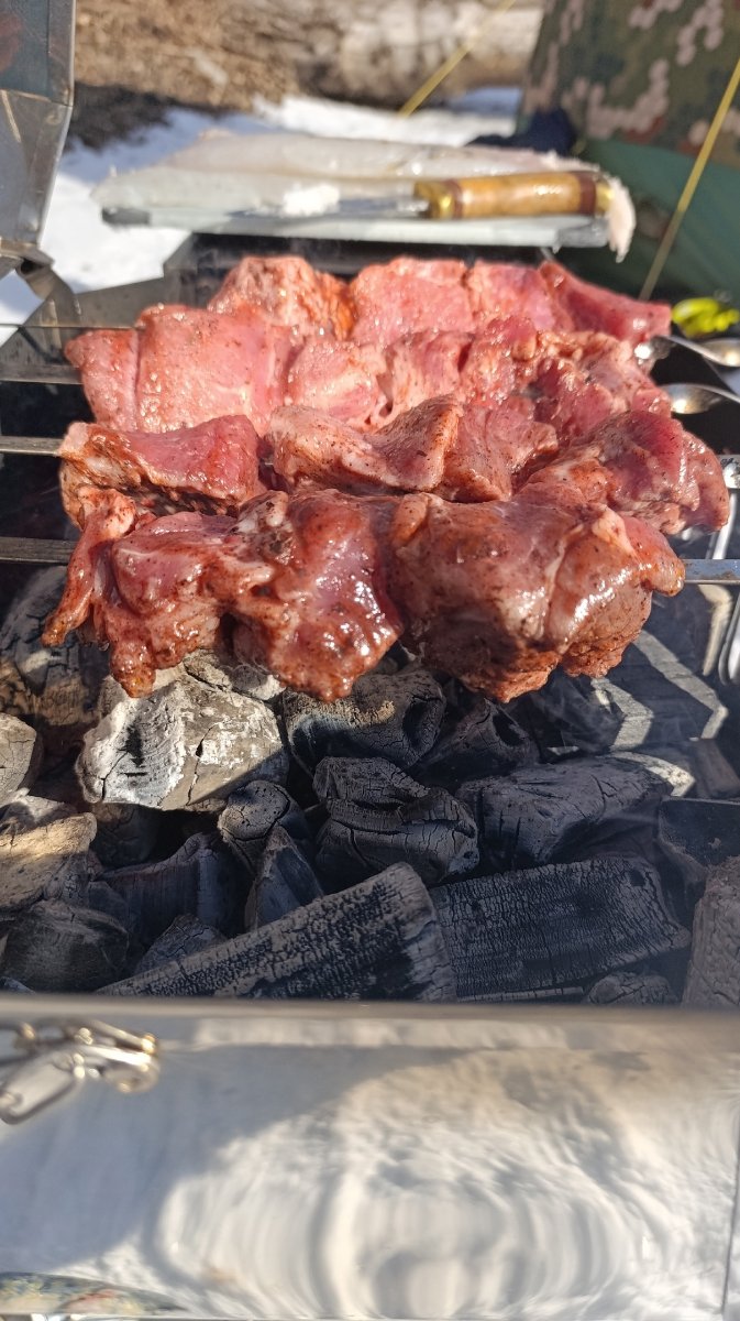 Дальше я даже хотел подарить его Алексею и Вале, но вовремя понял что это бессмысленно. На даче у них есть здоровенный мангал. А на природе мясо и прочее всегда жарю я на своем мангале ...
