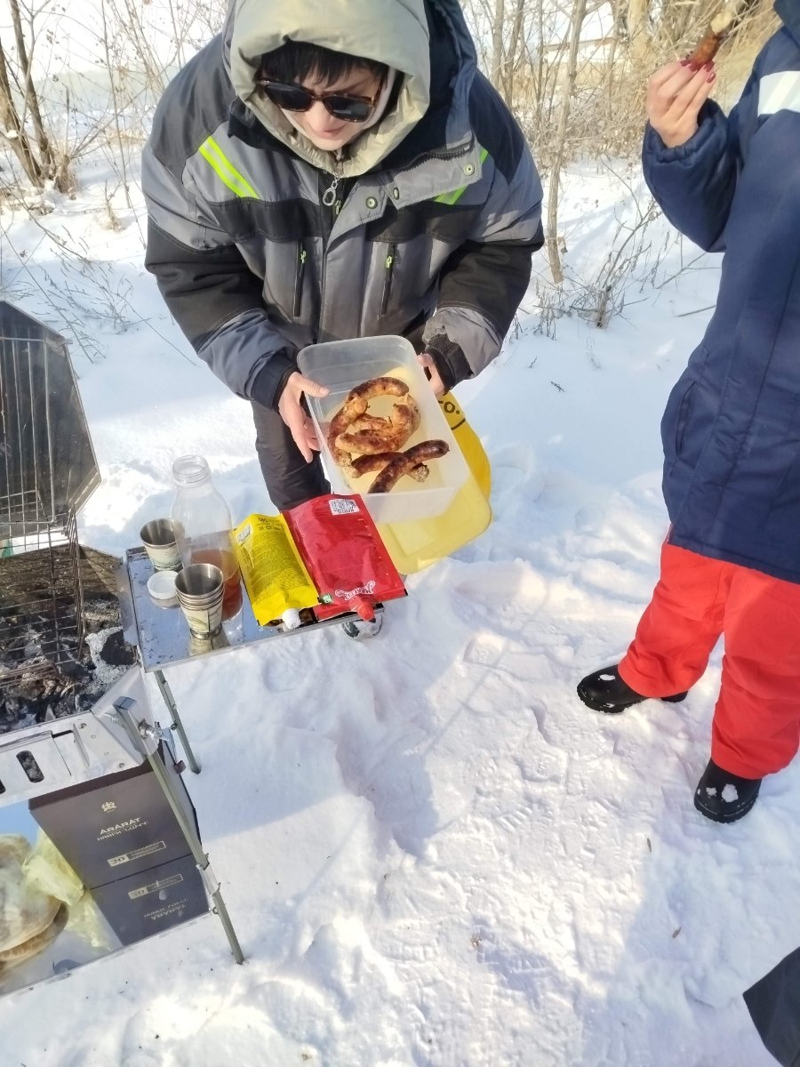 Дальше начались проблемы с розжигом. Погода просто супер, но ужасно холодно. Газ предательски не хотел гореть. Даже с учетом что в горелке оборот газопровода который при горении испаряет газ. Кое как подожгли. Давно уже подубываю о горелке на жидком топливе. Как раз для таких случаев.