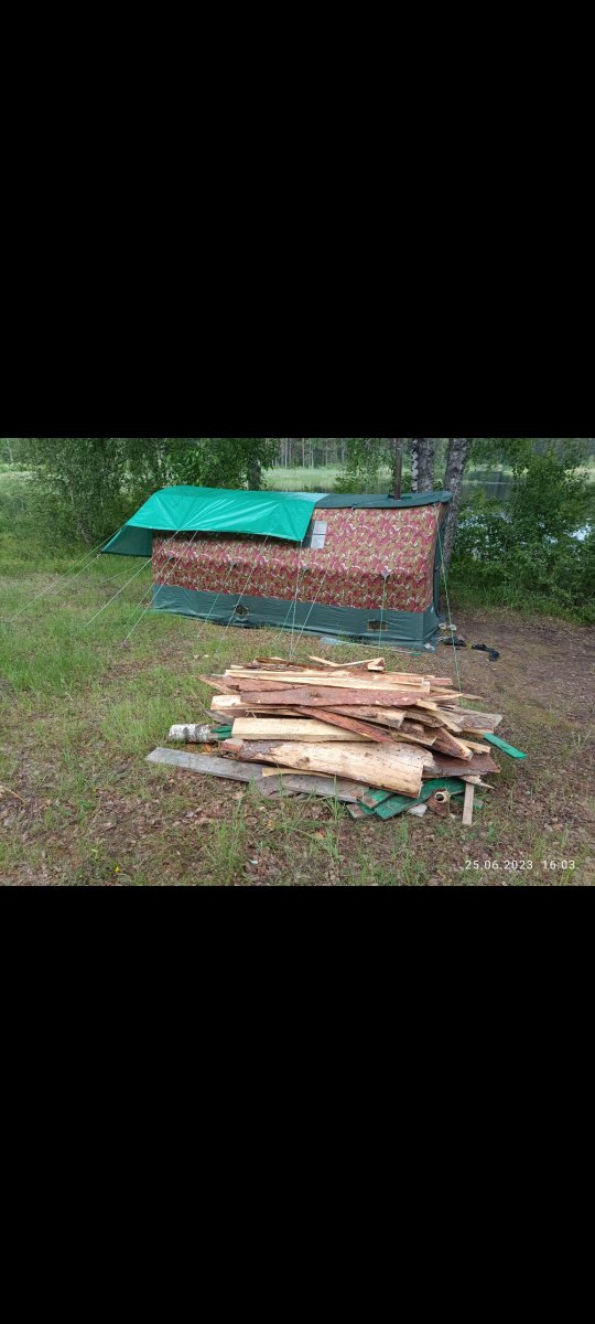 Фотки прошлого года на другой флешке, на телефоне нашёл 2023 год, но место стоянки и количество растяжек одинаково. :-D Палатка растянута на все растяжки и заякорена колышками от Бахи.