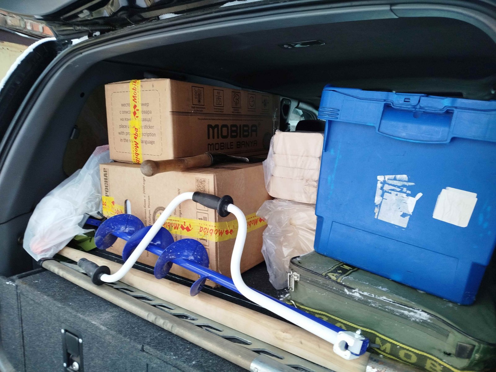 Баню прям бросил как она была, только с двери дугу снял чтобы дверь открытая была. Через час вернулись, а палатка абсолютно сухая. По времени уже было в обрез надо было возвращаться в город. И я весь комплект просто побросал в машину как оно было. Медиана у меня ехала на заднем кожаном сиденье как царица )))