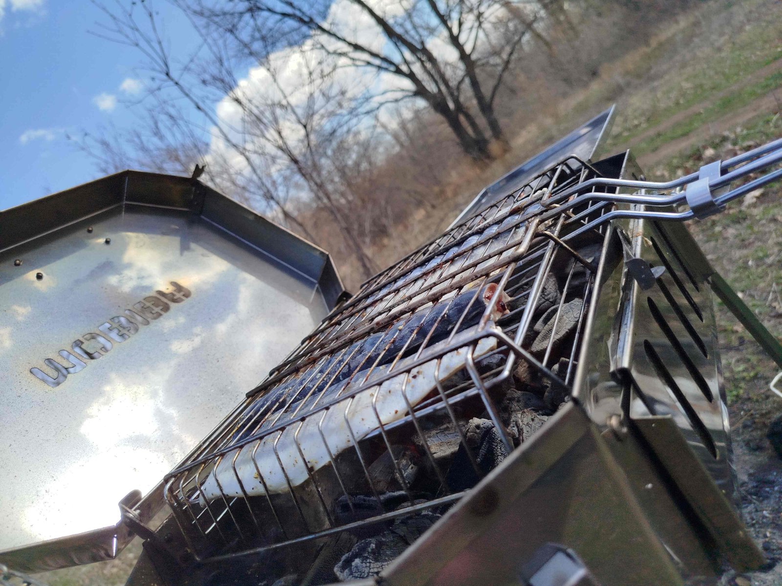 В этот раз расположился чуть в строне, неспеша распаковал, установил, разжег угли и сел просто покайфовать рядом, эстетика изделия выше всяких похвал!