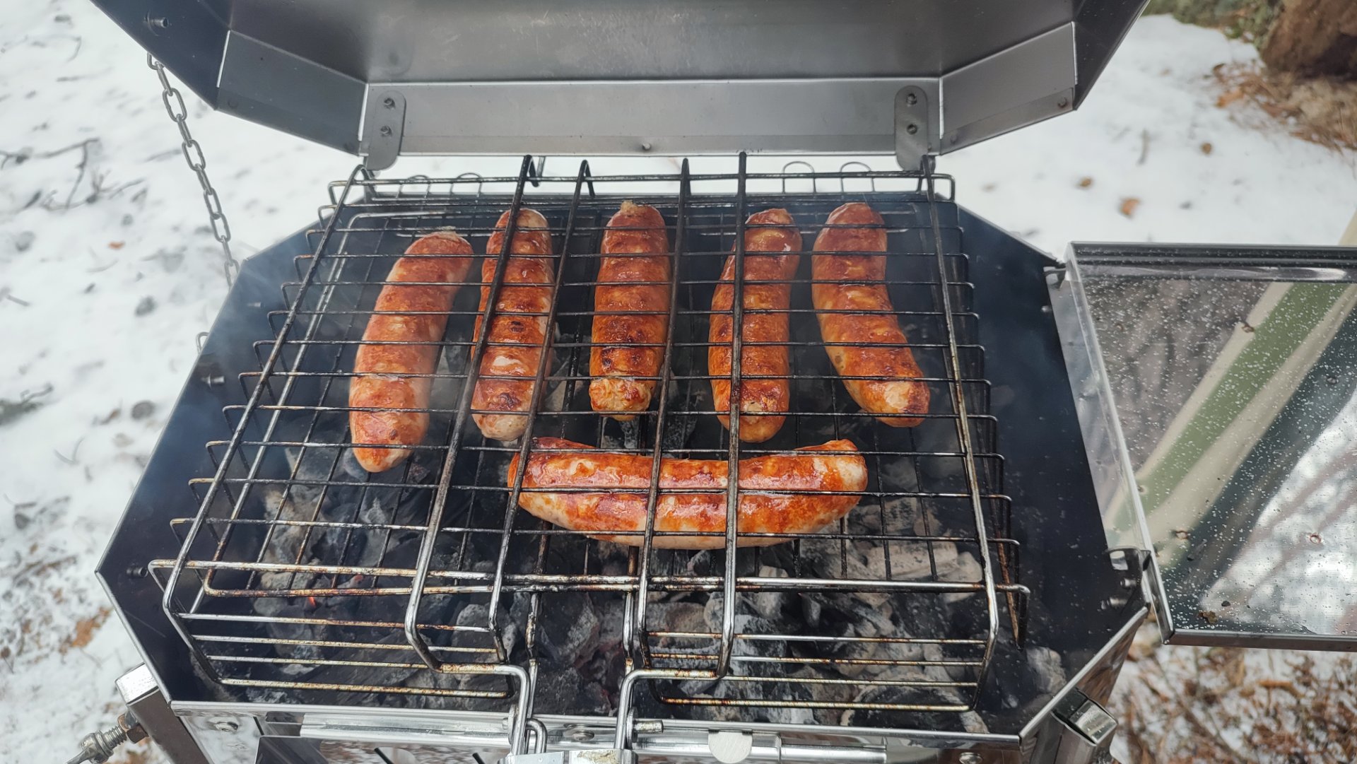 Готовил купаты и курицу, курицу немного передержал, так как готовится все очень быстро.
