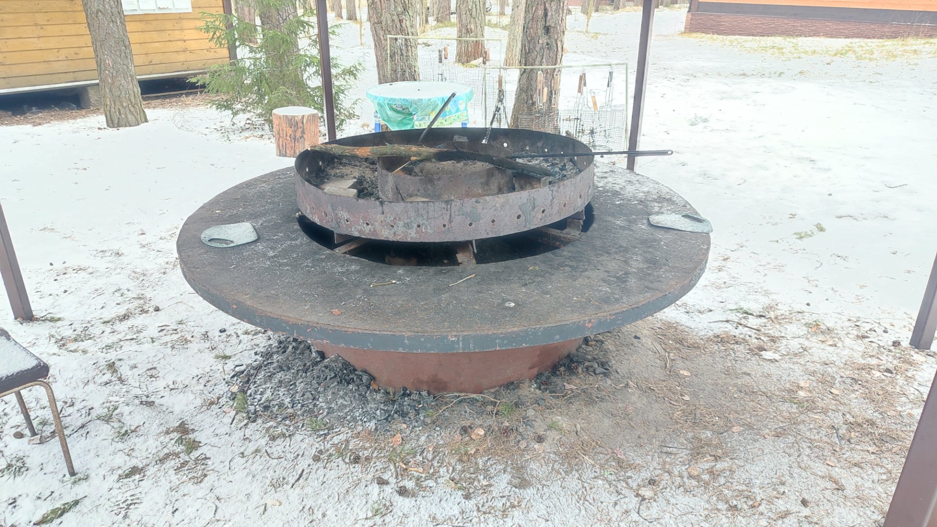 Местный мангал мало того что сделан круглым, так еще перед самим мангалом столик, "для удобства" расположить продукты, решетки.