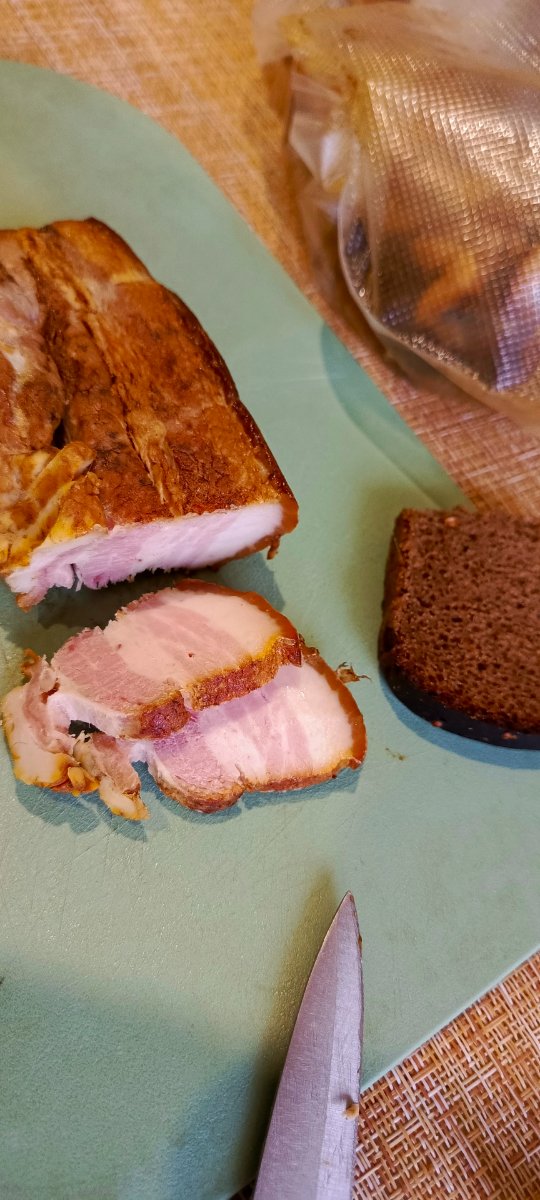 Заготовил прослоек и рёбер холодного копчения впрок. Коптильня холодного копчения у меня электростатическая, что позволяет коптить не сутками, а час-два с теми же результатами. Электростатика, если вкратце, когда дым не просто пролетает в трубу, а сначала электризуется, а потом буквально всасывается в продукт. Примерно как гальваническая ванна с анодом и катодом. В общем кому интересно, нагуглят :-) .
