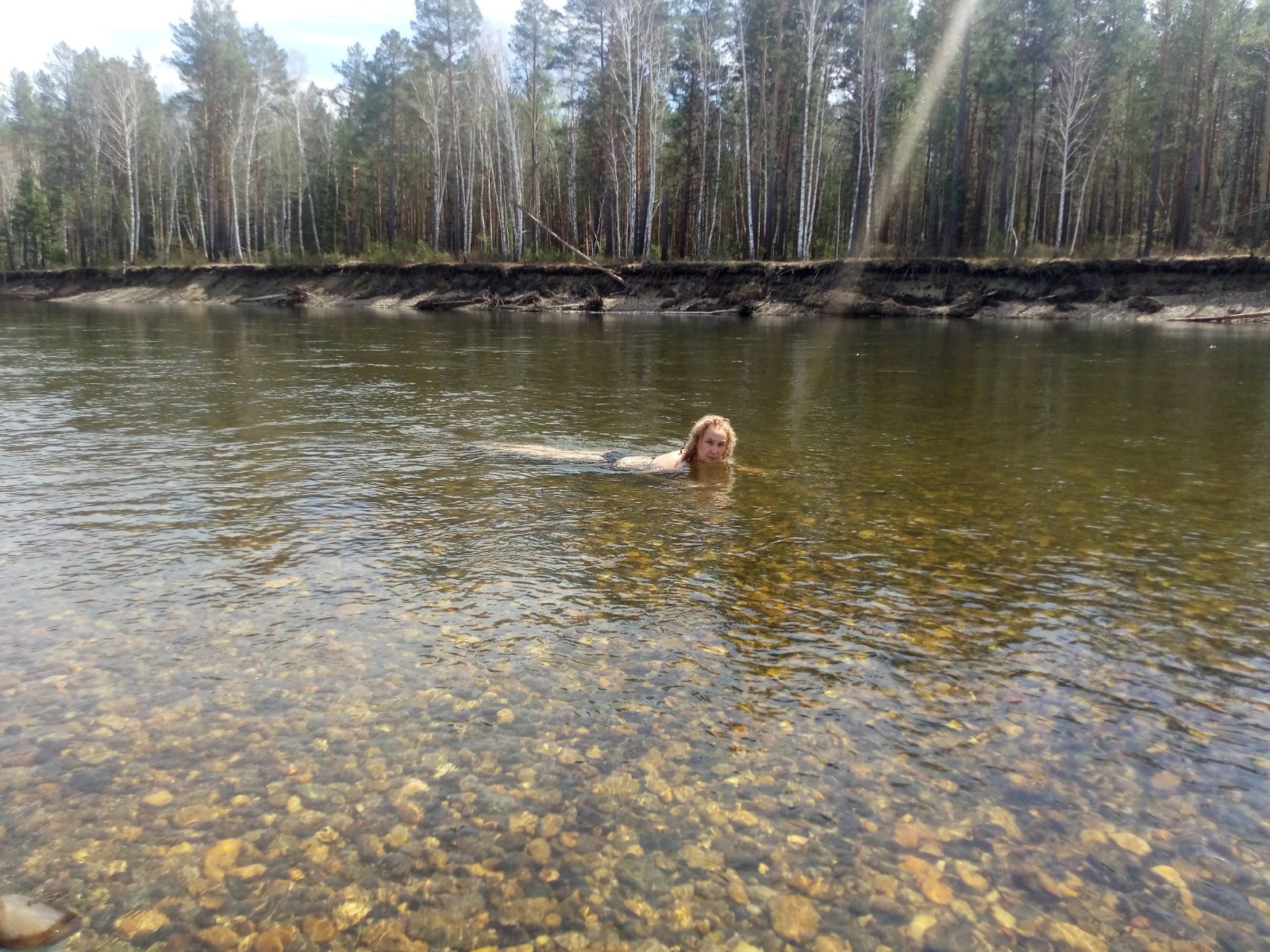 КЦ-4 при +8 на улице делает в МБ-15 шикарную баню. Наши жёны открывают купальный сезон, хотя на том берегу ещё лежит лёд. Паримся долго. Заходим вчетвером, и по двое, и по одному лежим на полке по 10-15 минут.