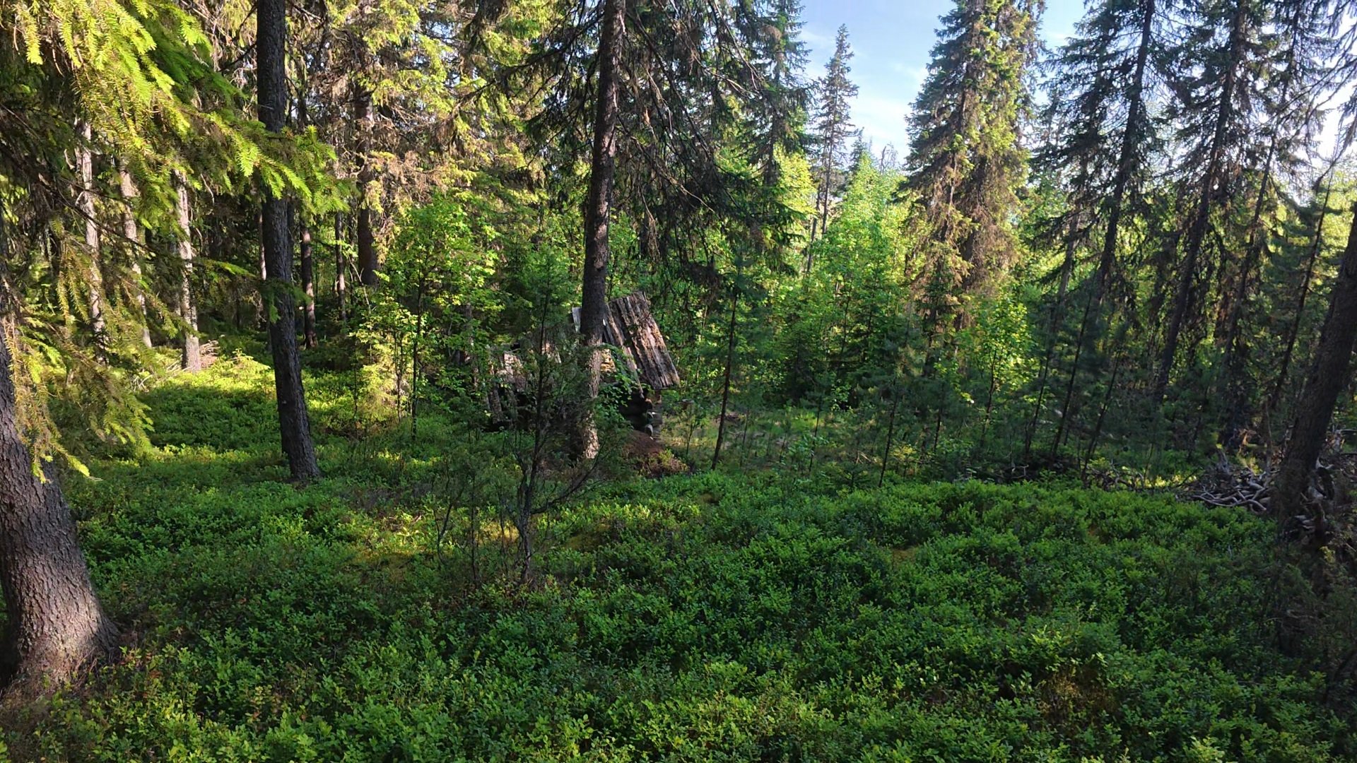 В лесу наткнулись на старую заброшенную избушку.