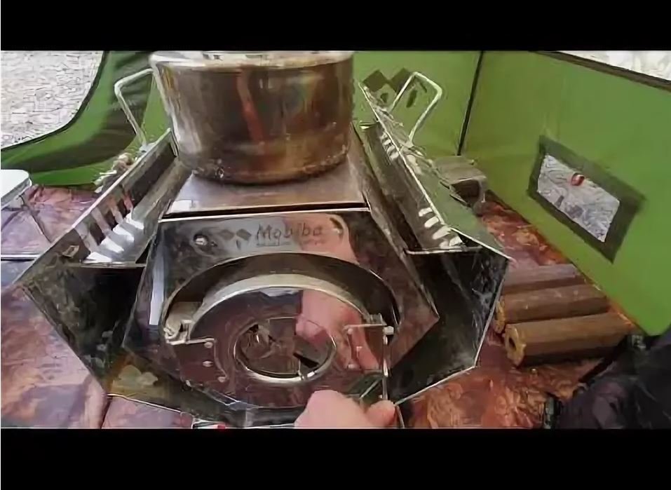 У меня в начале нашых тур.выездов была печь небольшая с передним расположение трубы, мне очень не нравилось на ней что то готовить, когда дымоход спереди, хоть и сбоку сидел, сзади печки стенка палатки.