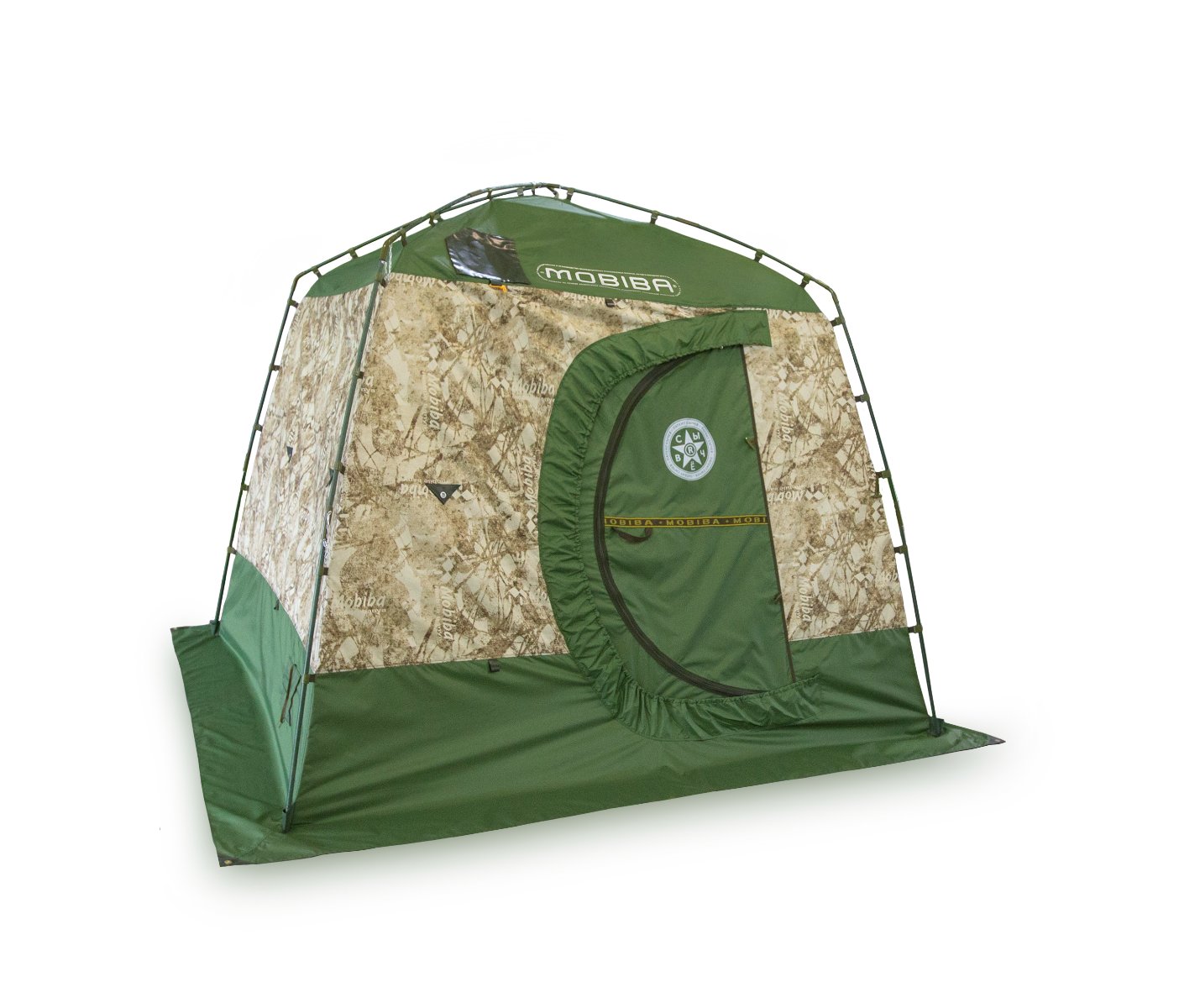 Мобильная баня-палатка «МОБИБА МБ-15 СП» со съемным окном размером 700х700 мм и с антимоскитной сеткой в распашной двери. Возможность использования стен в качестве навесов, превращая палатку в веранду.
