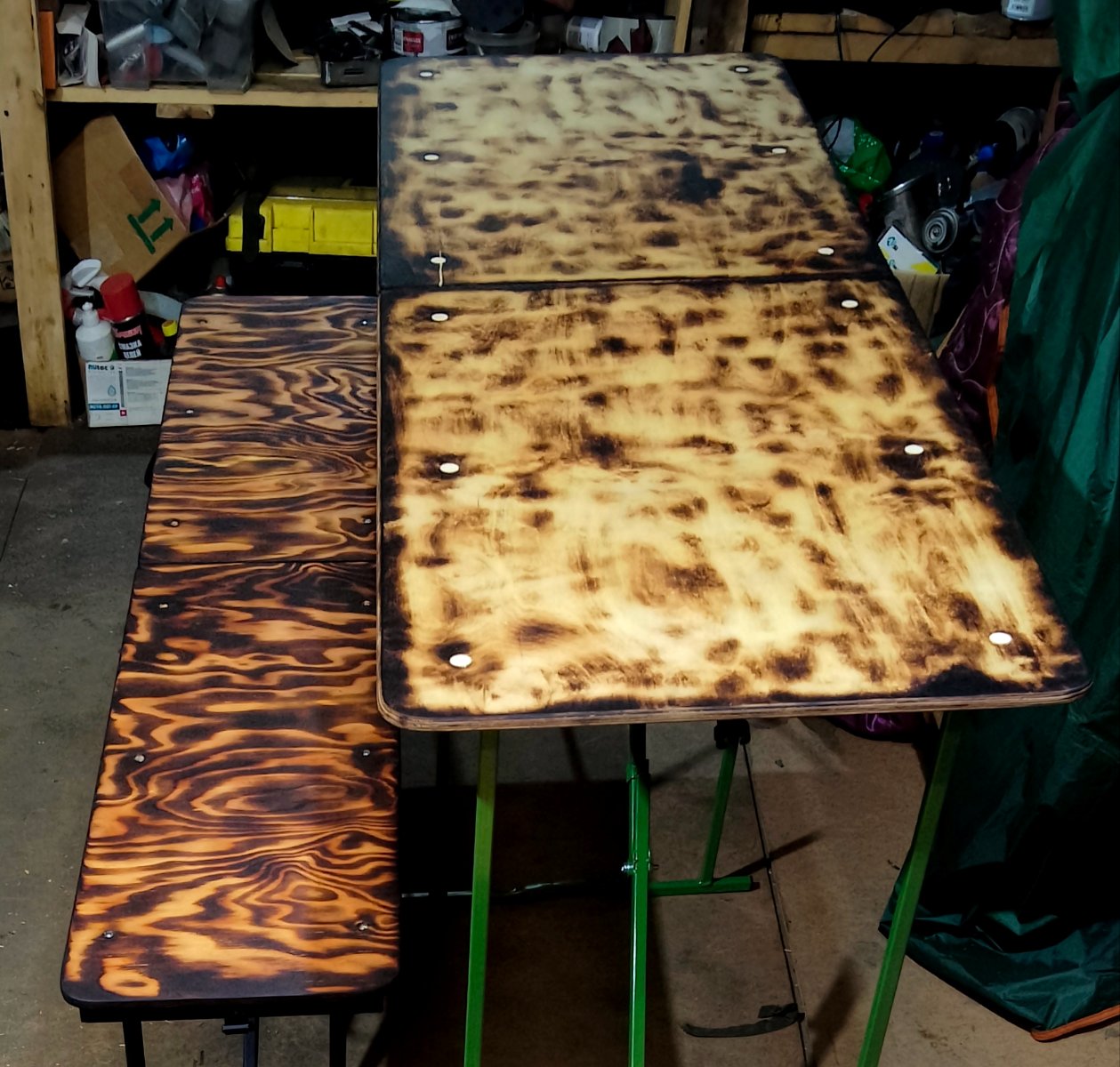 Обжег для красоты и еще раз прошел маслом, в итоге получилось довольно неплохо. Не страшно испачкать и внешний вид всегда имеет. Особенно в баньке, а не в гараже![]()