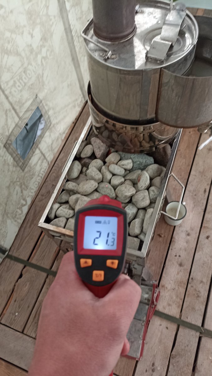 Вот такие показания. Как нагрелись камни, так и держалась температура, от 280°по краям,до 320°