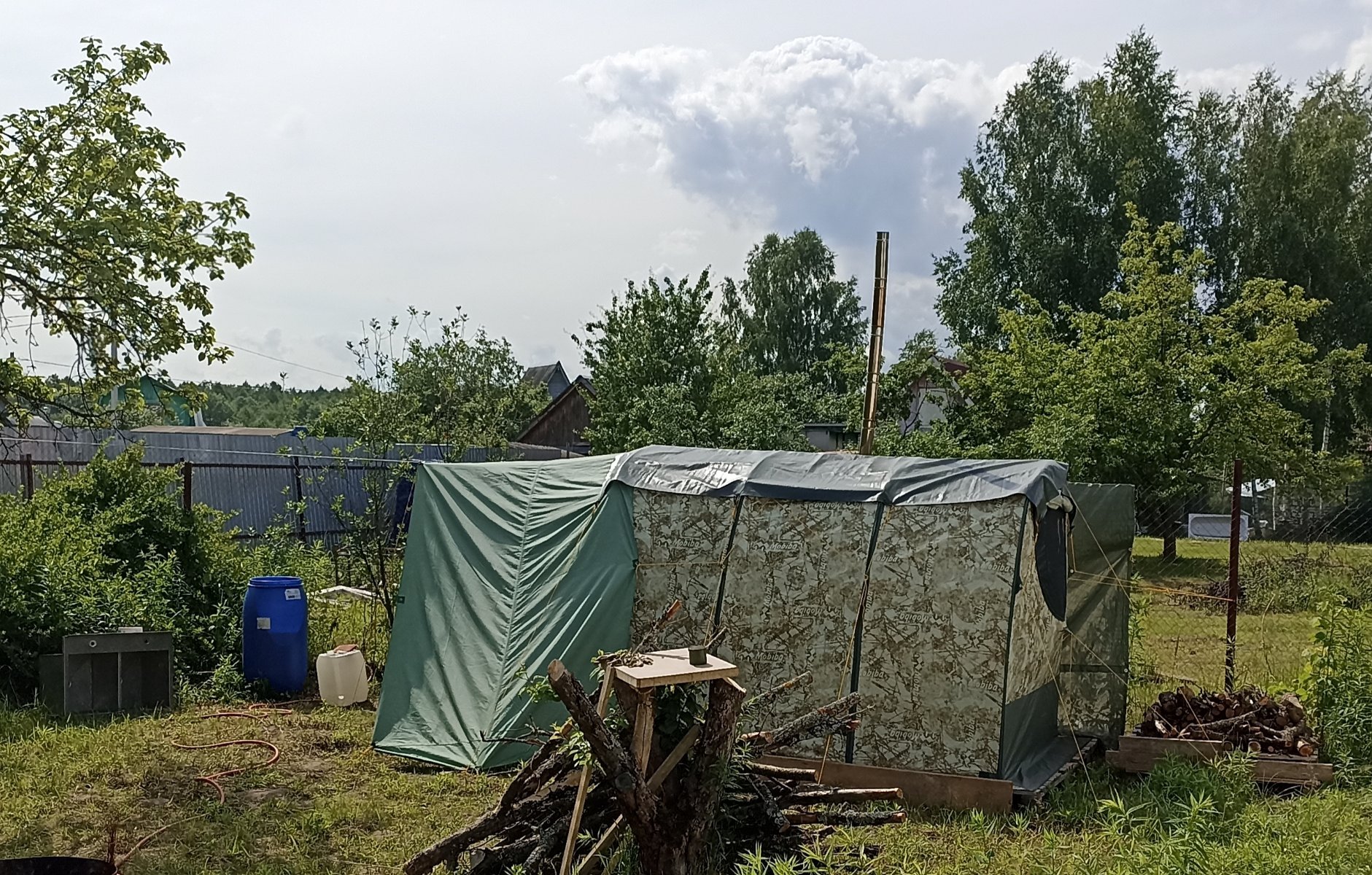 Дополнение, топил яблоней, спалена в том году, высохла, и обрезки досок.