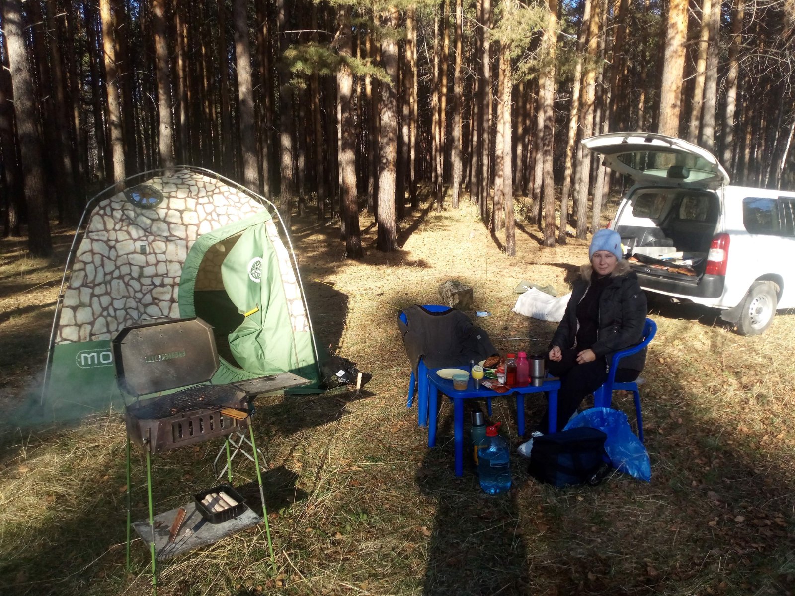 На выходных выбрались в лес на нашу поляну. Жене захотелось сёмги жареной. Давай, говорит, без палатки, просто в лесу посидим. Но я, как старый мобибиец, ещё позавчера ночевавший в Мобибе при - 16, на это дело не повёлся и взял с собой К5 с Дюночкой.